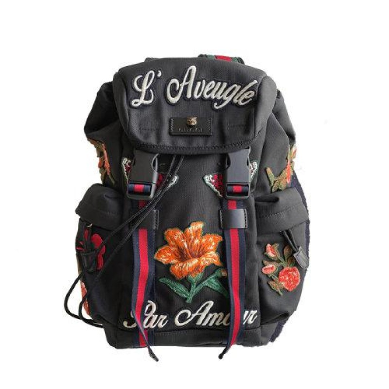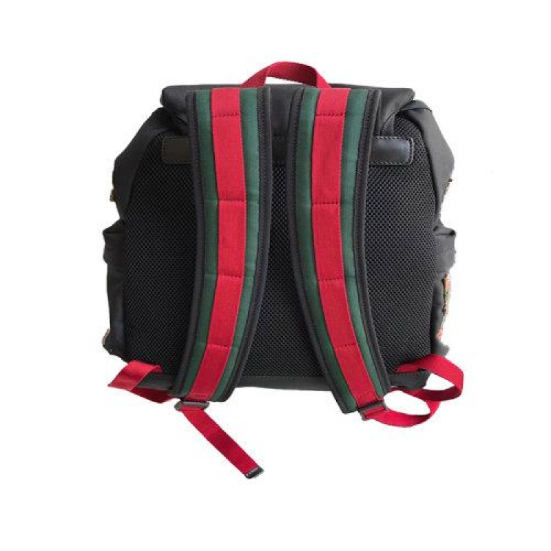 【奥莱】瑕疵折扣GUCCI/古驰黑色织物/配皮男女通用双肩包     bi