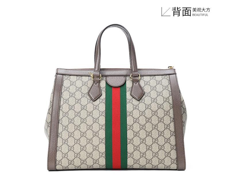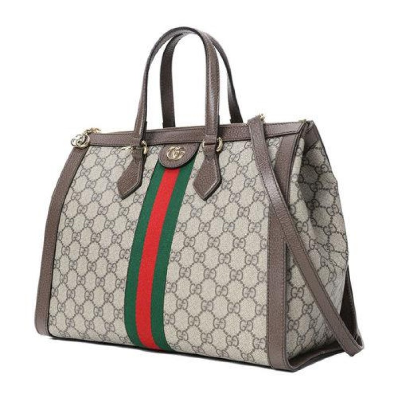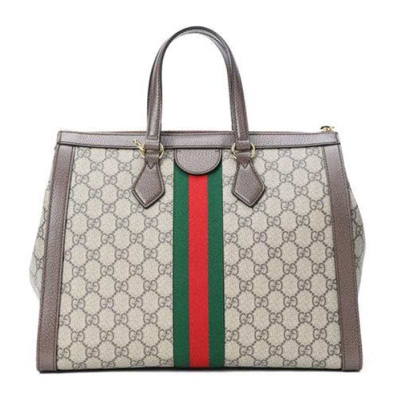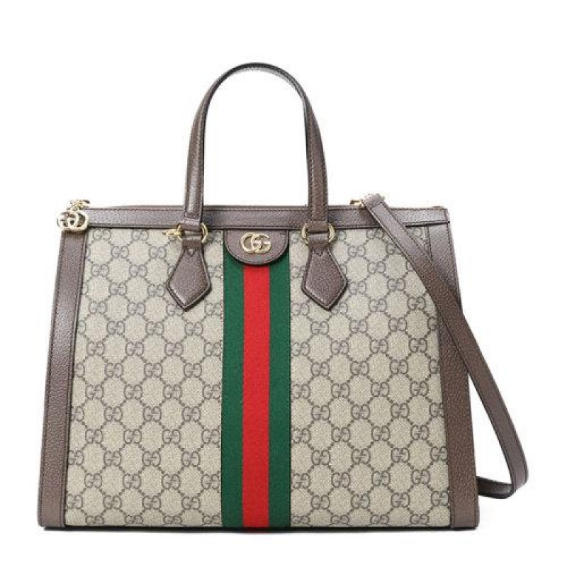 GUCCI/古驰 Ophidia TOTE 托特包 购物袋 单肩包中号 双G饰扣老花524537金扣 帆布