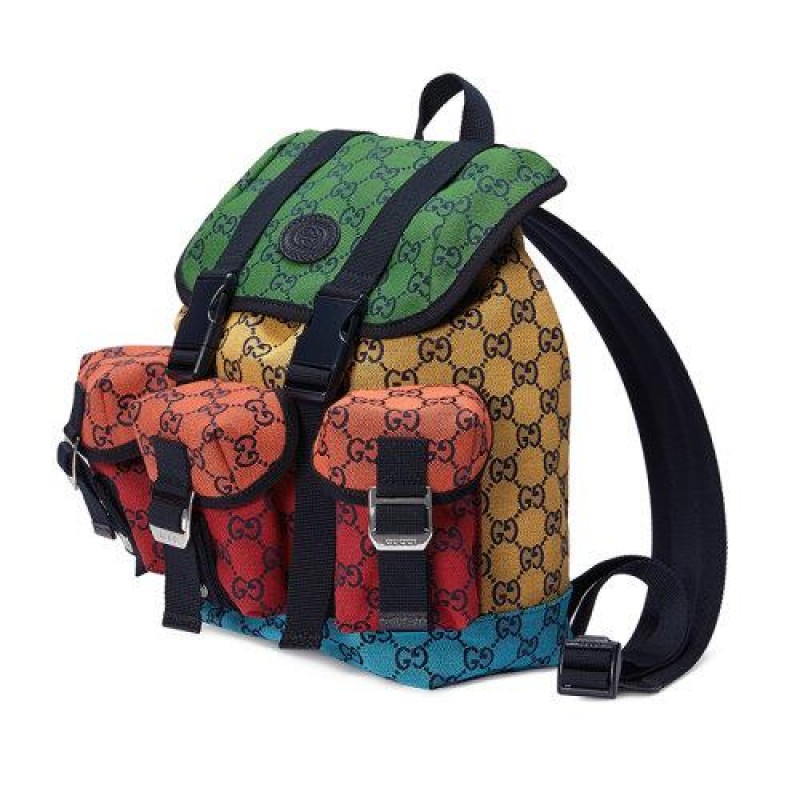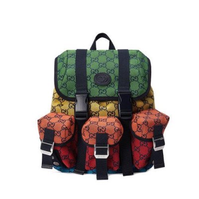 【 Tax included 】 GUCCI/Gucci 2021 Spring/Summer New GG Multicolor Series Unisex Colorful GG Canvas Gucci Inscription Drawstring Flip Shoulder Bag 6587832UZBN3280