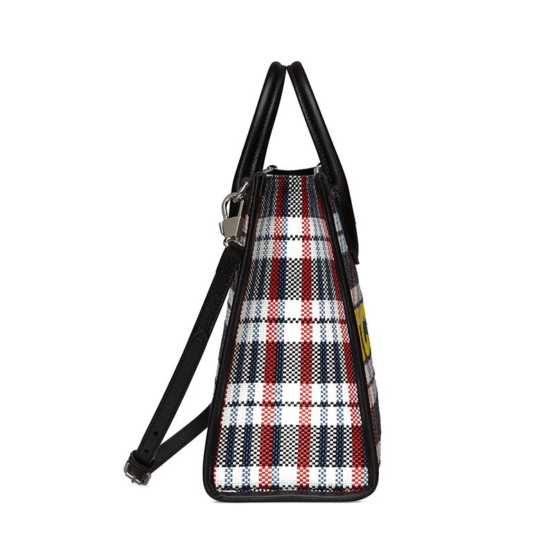 【包税】GUCCI/古驰 2021春夏新款 Cabas系列 女士蓝色/白色/红色格纹rafia尼龙ICCUG刺绣手提斜挎单肩包‎6599832S6AN1098