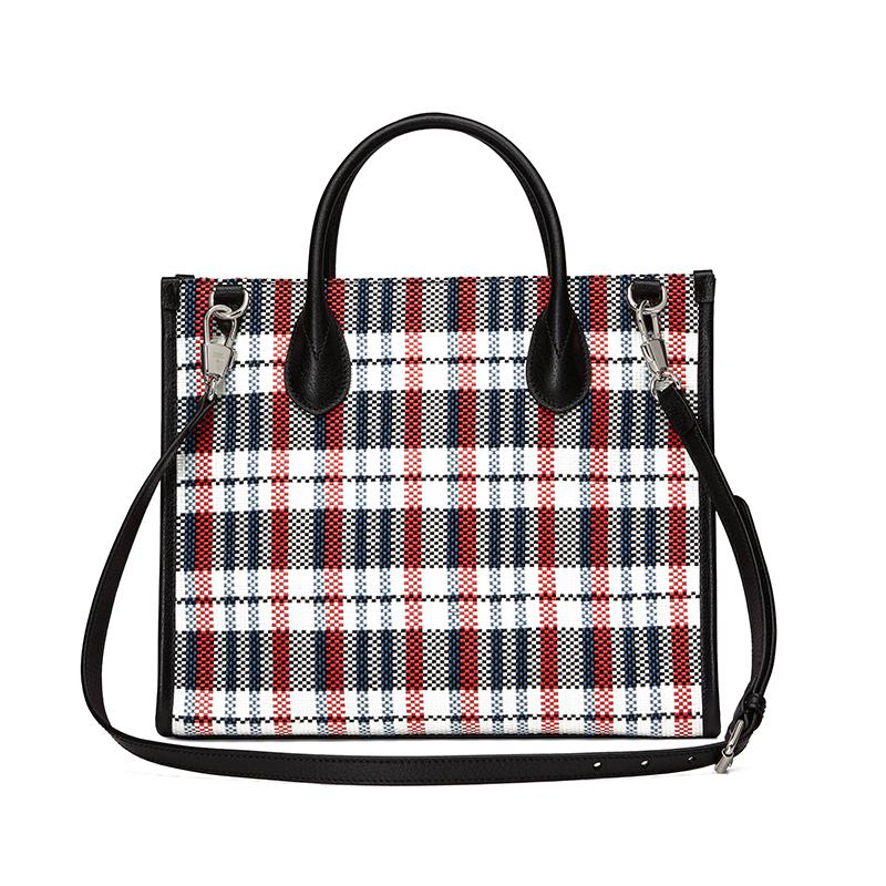 • 尼龙rafia,带有蓝色,白色和红色格纹