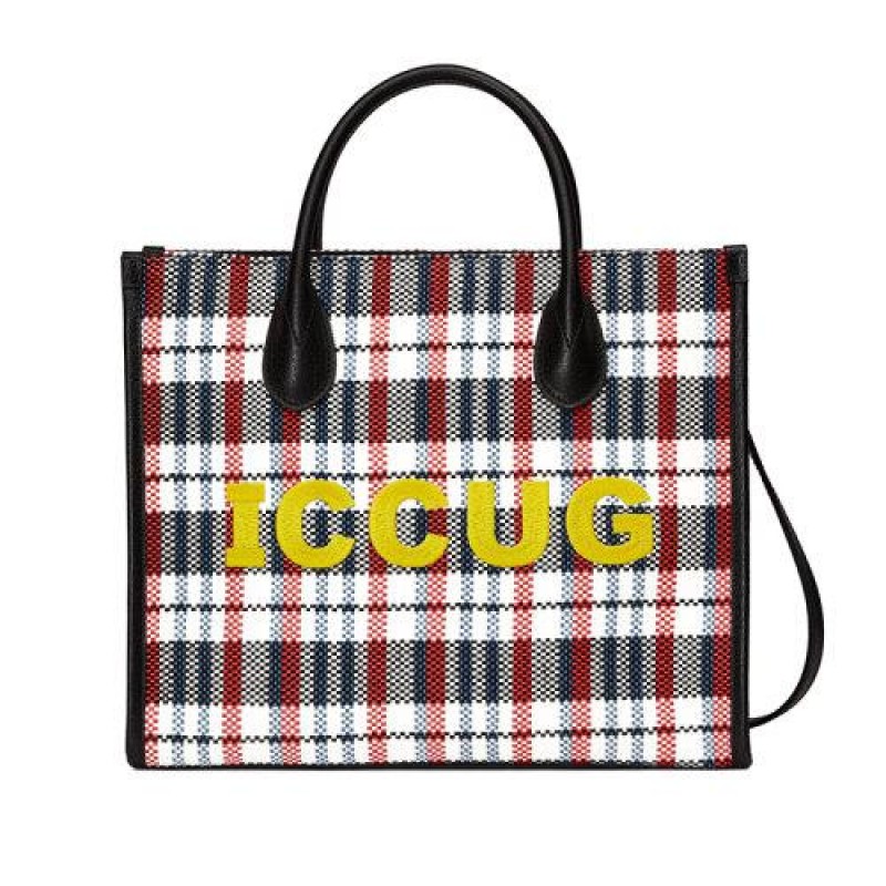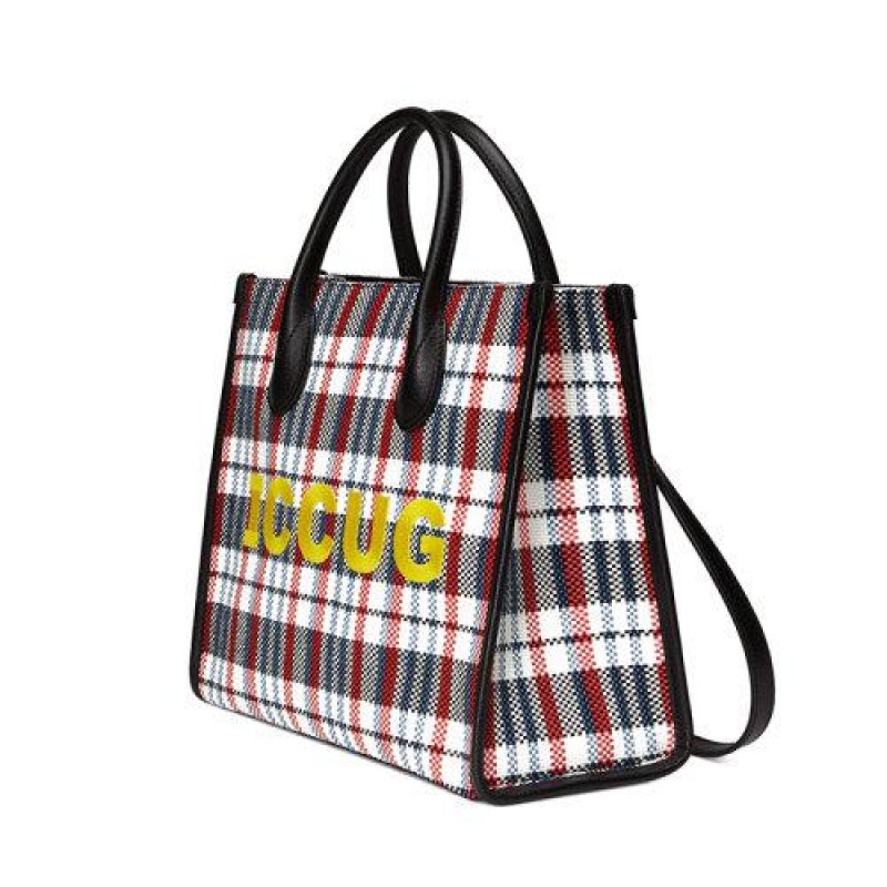 【包税】GUCCI/古驰 2021春夏新款 Cabas系列  女士蓝色/白色/红色格纹rafia尼龙ICCUG刺绣手提斜挎单肩包‎6599832S6AN1098