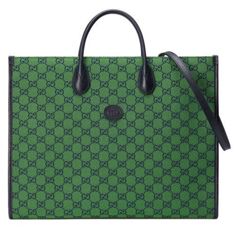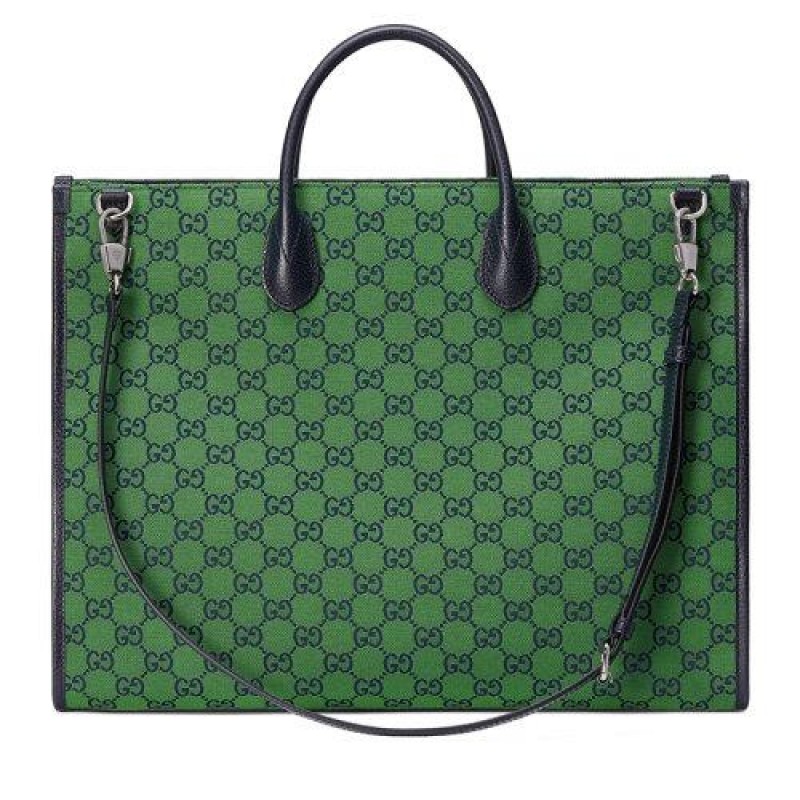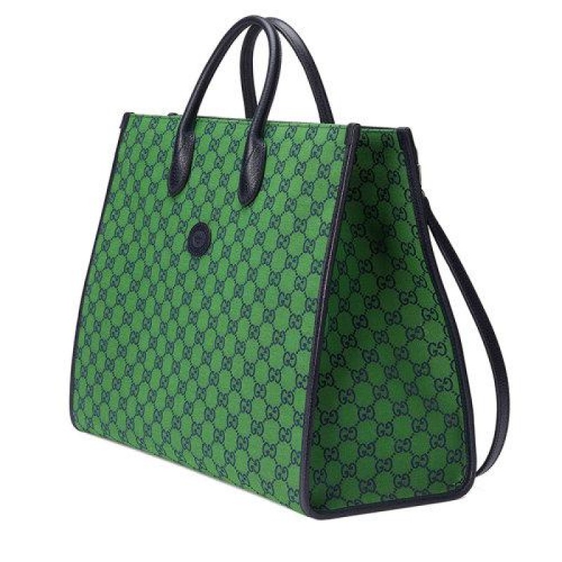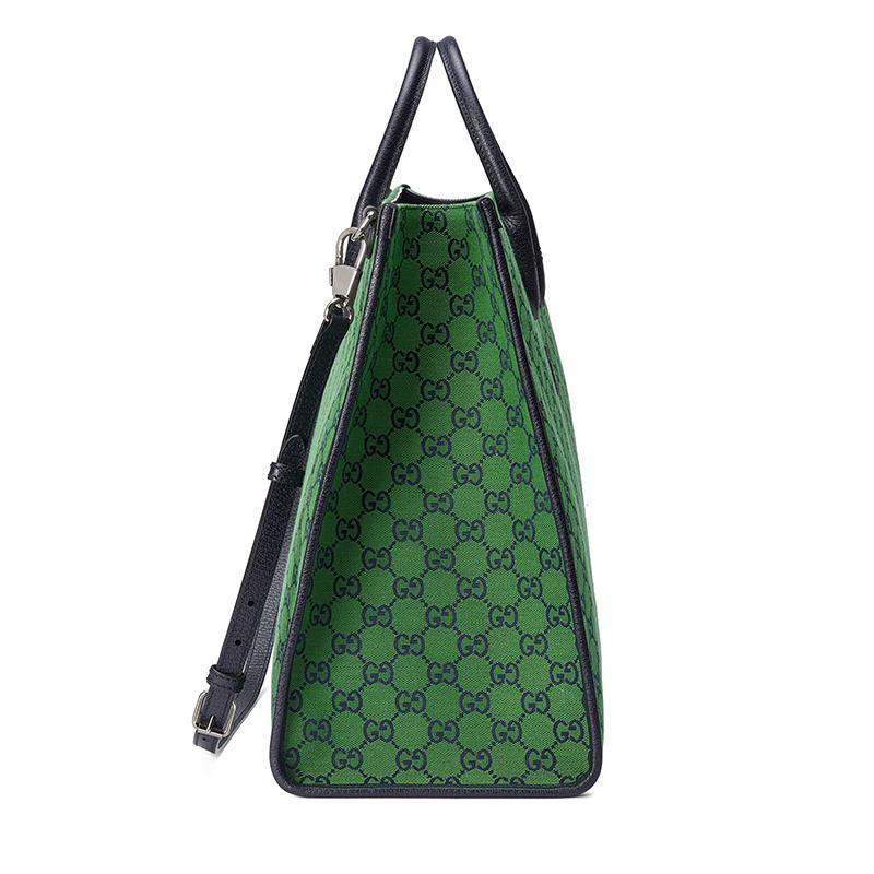 【 Tax included 】 GUCCI/Gucci 2021 Spring/Summer New Cabas GG Multicolor Series Large Unisex Green and Blue GG Canvas GG Diamond Pattern Handheld Cross Shoulder Bag 6599802UZAN3368