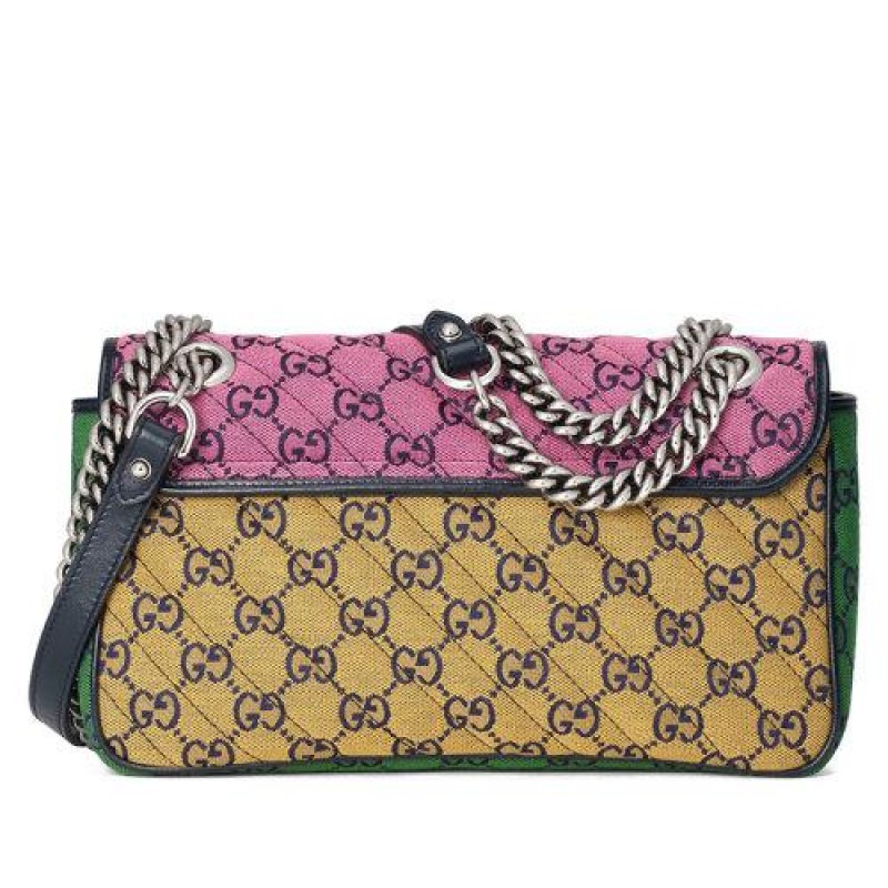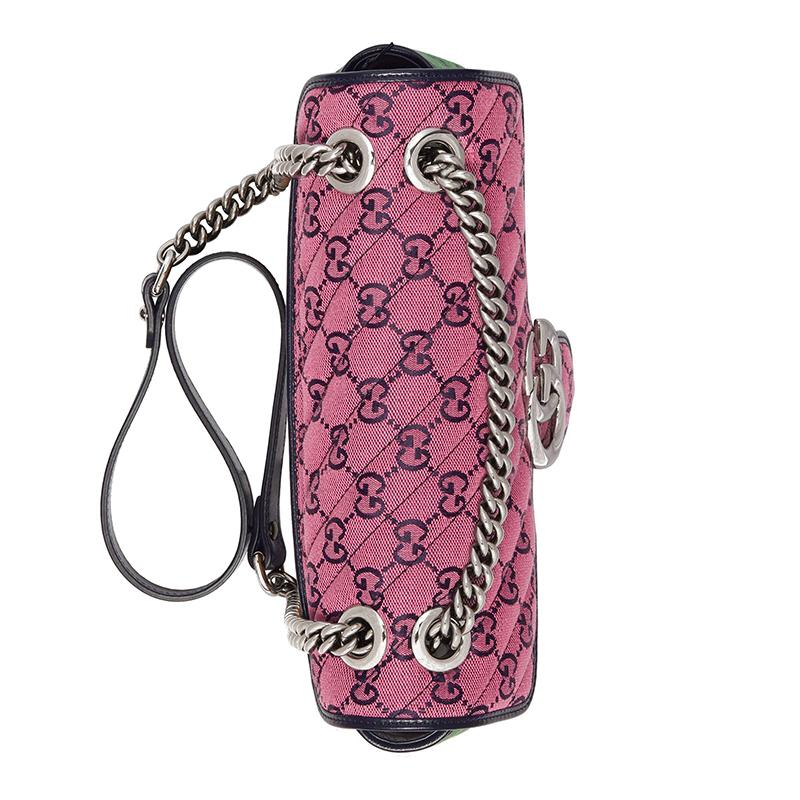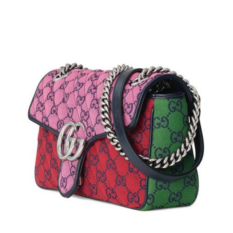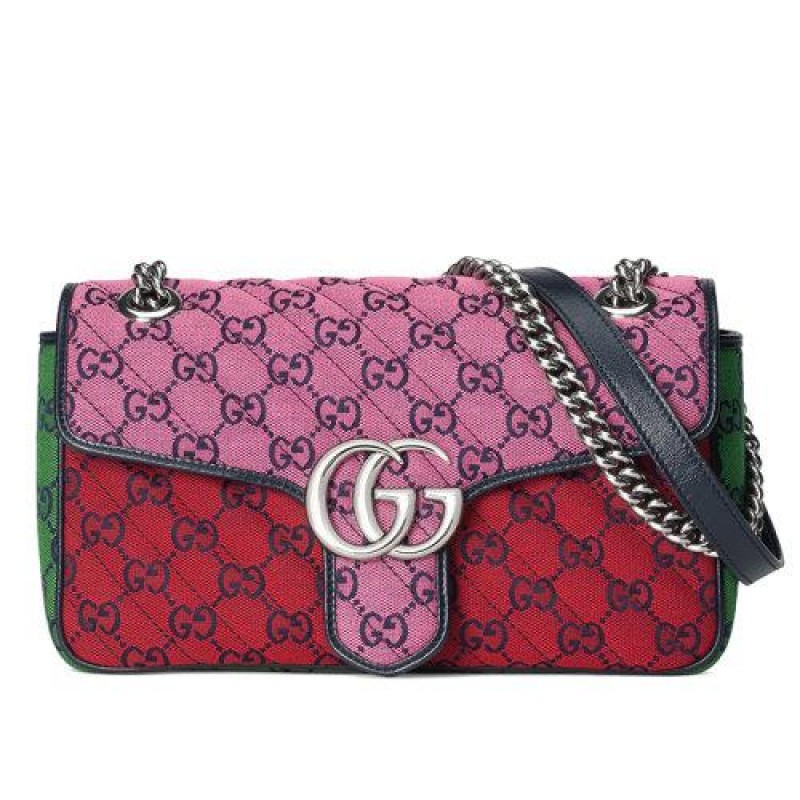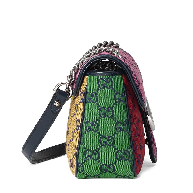 【包税】GUCCI/古驰 2021春夏新款 GG Marmont系列 小号女士多色GG帆布银色饰面双G扣斜挎单肩手提包4434972UZIN5281