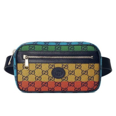 【 Tax included 】 GUCCI/Gucci 2021 Spring/Summer New Collection GG Multicolor Series Unisex Color GG Canvas GG Diamond Pattern Waist Bag 6586572U1BN4198