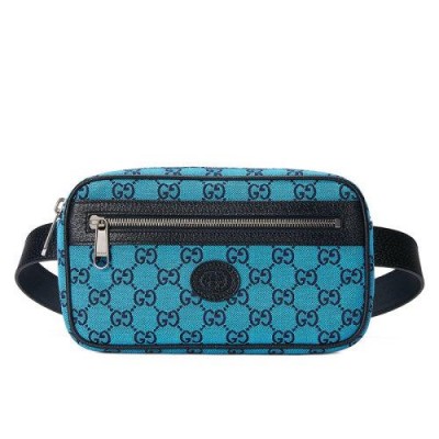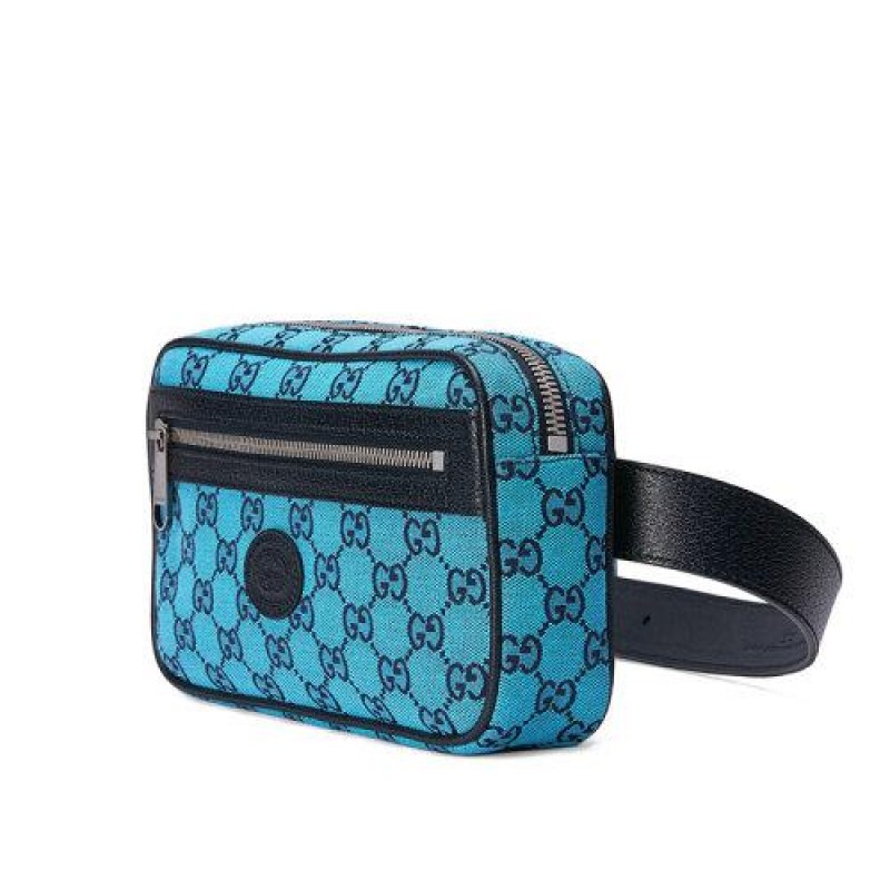 【包税】GUCCI/古驰 2021春夏新款 GG Multicolor系列 男女同款浅蓝色和蓝色GG帆布GG钻石图案腰包6586572UZAN4487