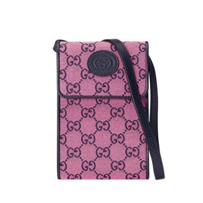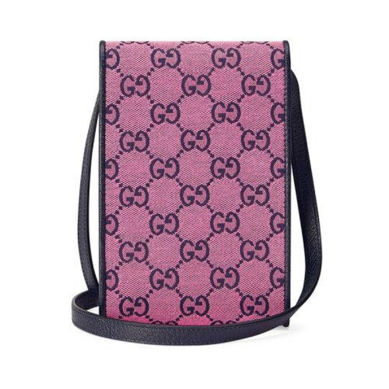 【包税】GUCCI/古驰 2021春夏新款 GG Multicolor系列 女士粉色和蓝色GG帆布GG钻石图案翻盖单肩斜挎包6575822UZAN5279