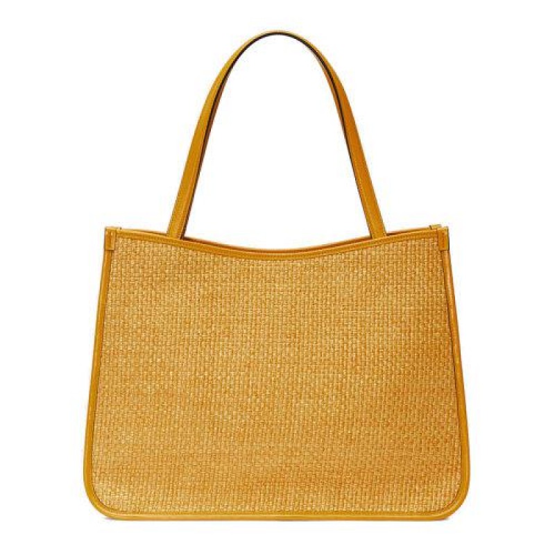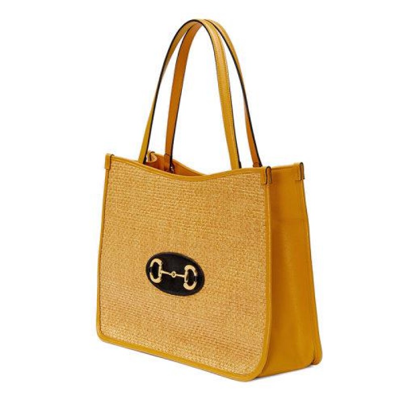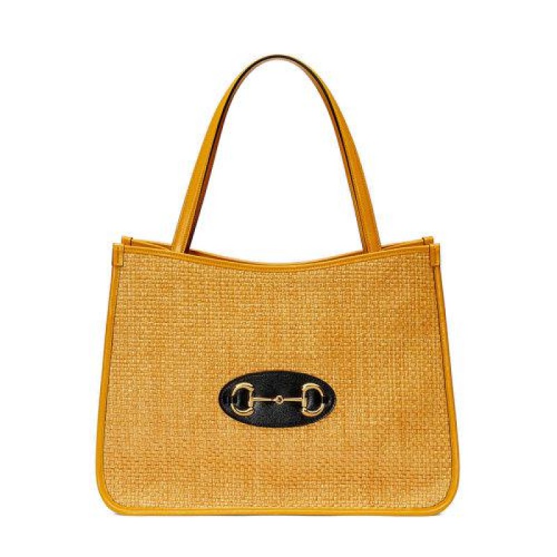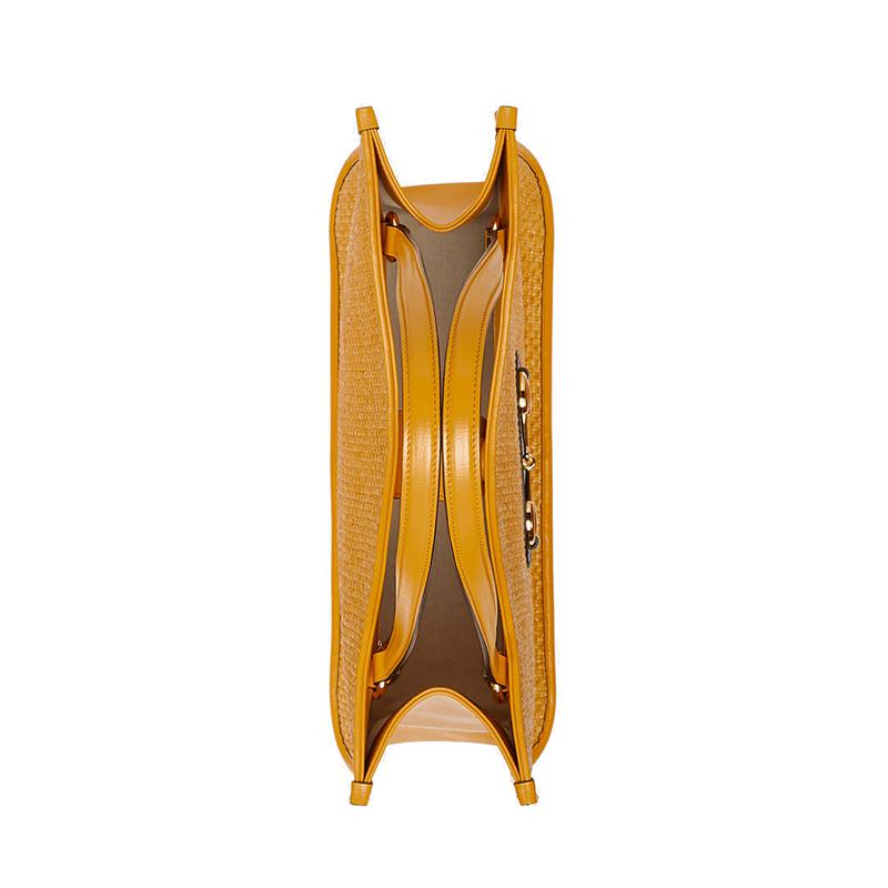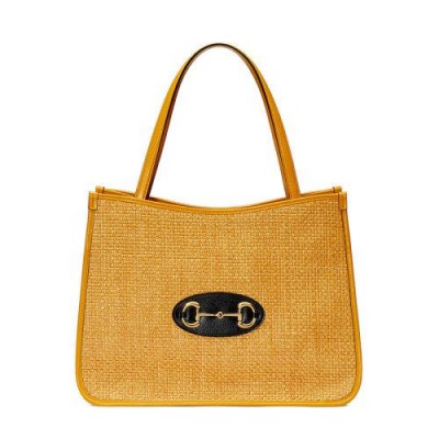 【包税】GUCCI/古驰 2021春夏新款 Horsebit 1955系列 女士黄色稻草织物手提包6236942VAAG7673