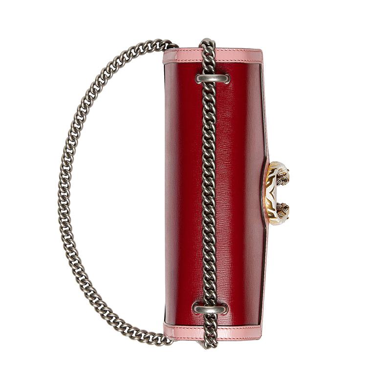 【包税】GUCCI/古驰 2021春夏新款 Dionysus系列 女士小号红色和粉色皮革虎头扣单肩斜挎包40024918YQX6664