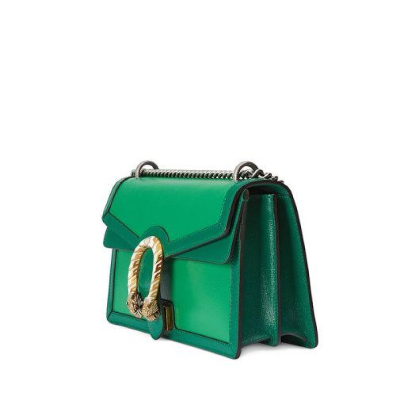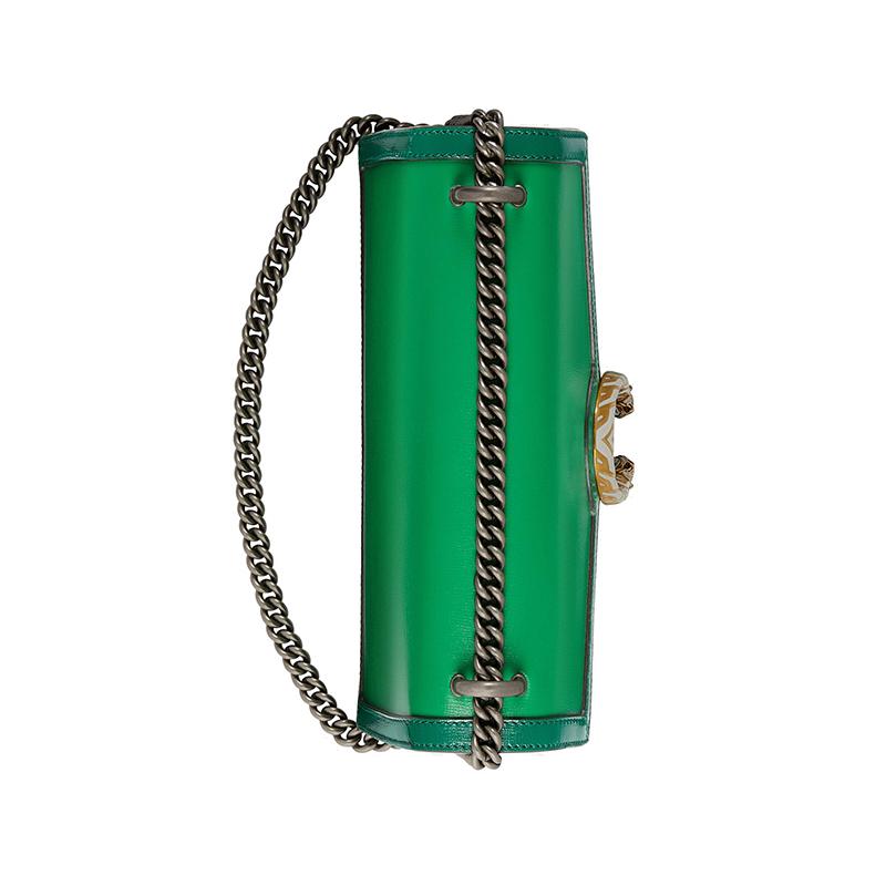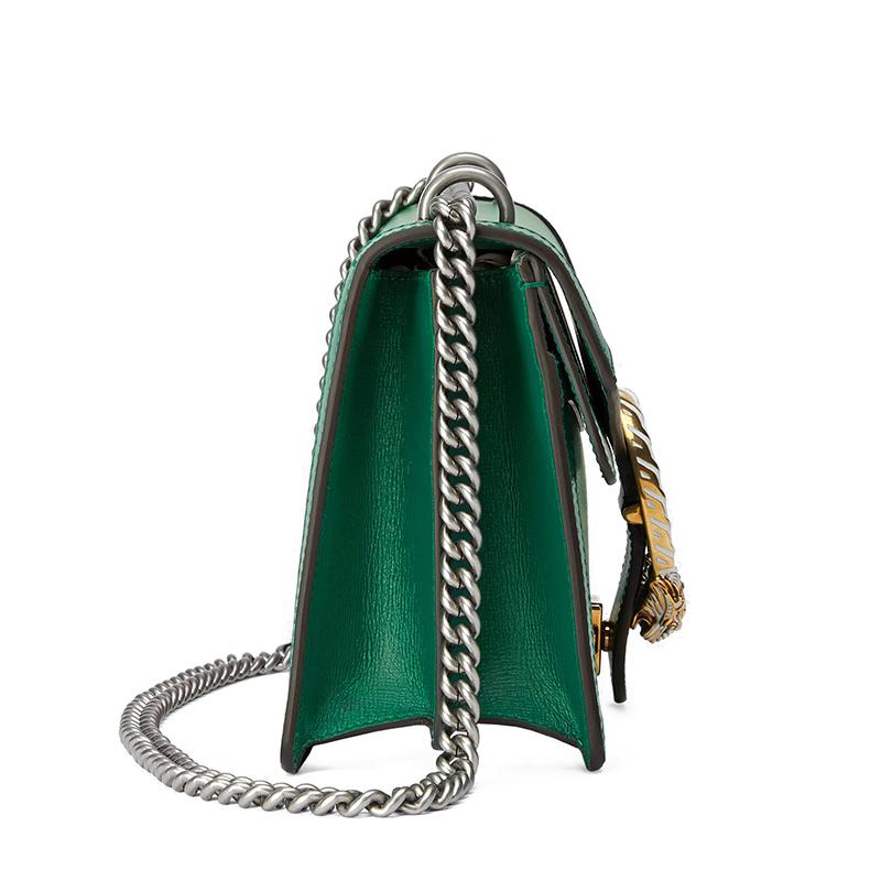 【包税】GUCCI/古驰 2021春夏新款 Dionysus系列 女士小号绿色和翡翠皮革虎头扣单肩斜挎包40024918YQX3765