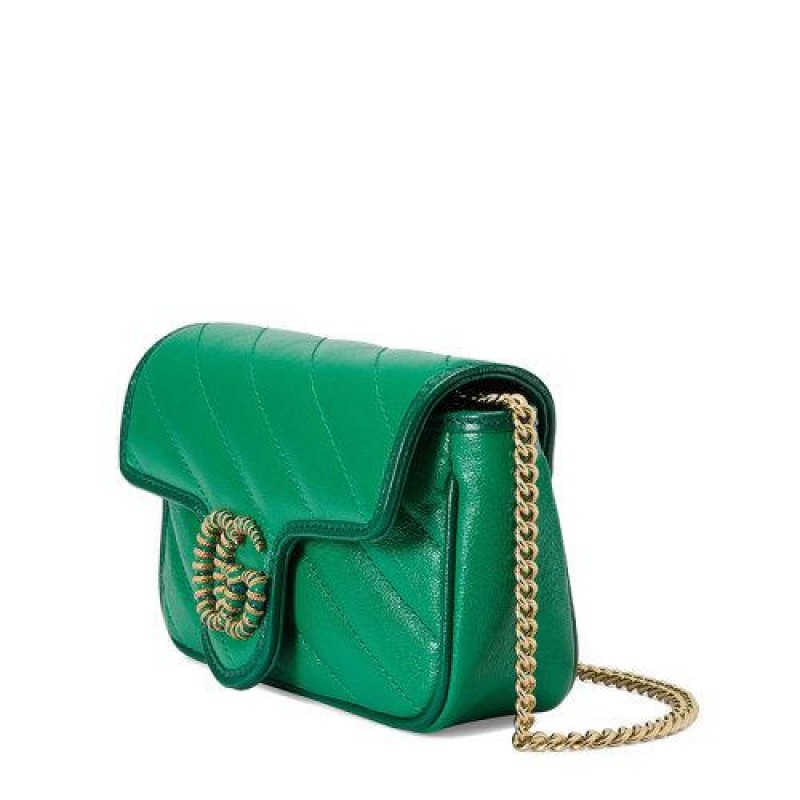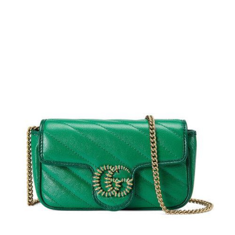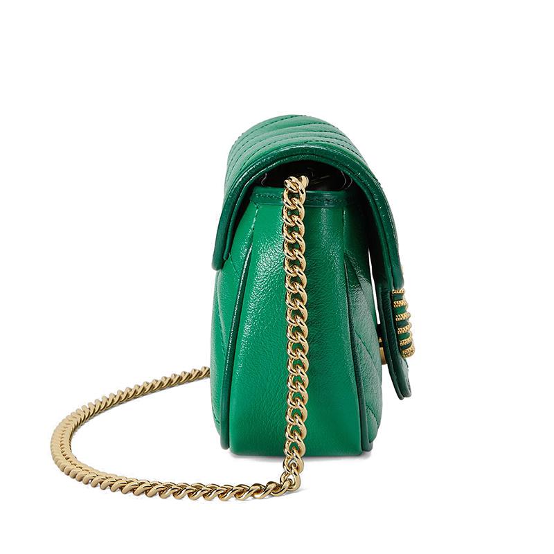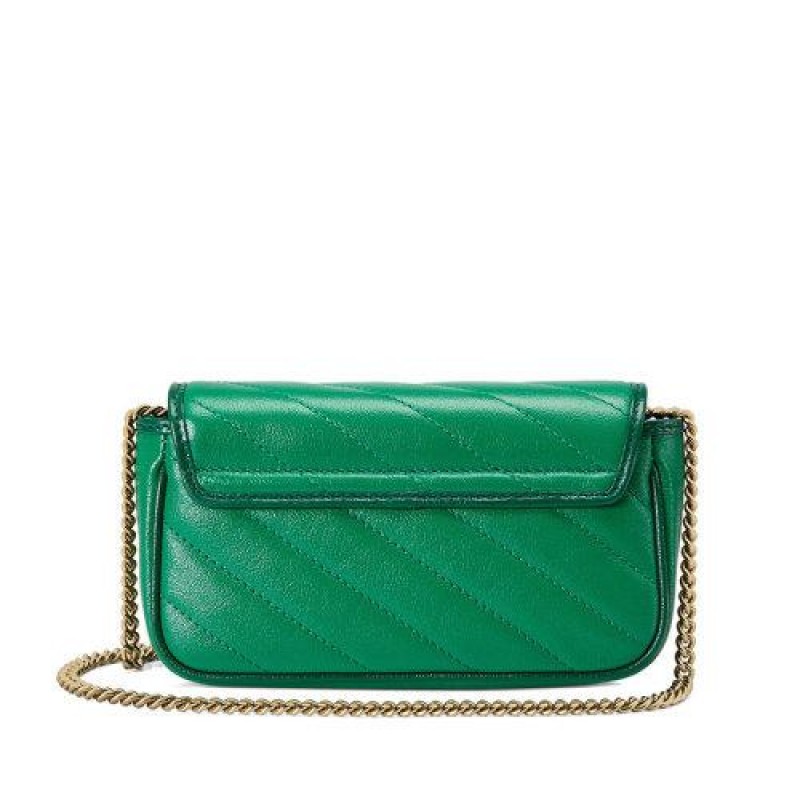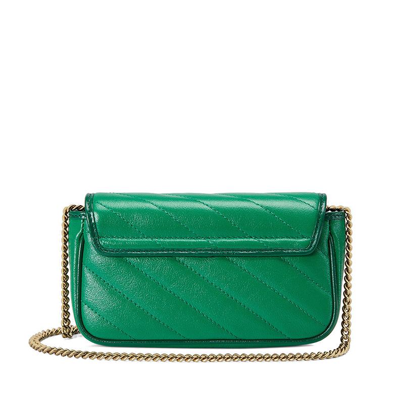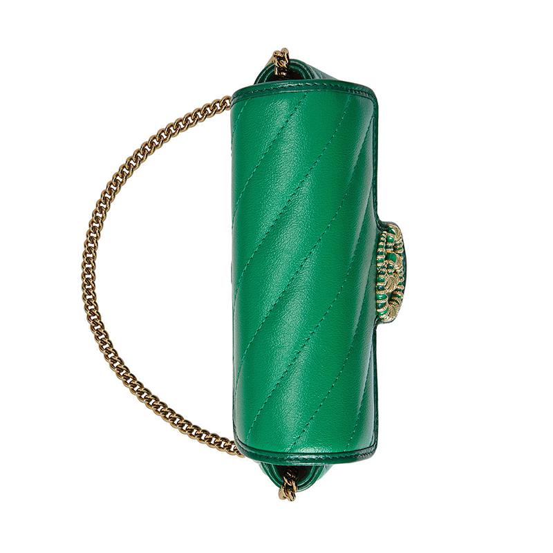 【包税】GUCCI/古驰 2021春夏新款 GG Marmont系列 女士超迷你绿色和翡翠色皮革翻盖珐琅双G单肩斜挎手提包5749691X5EG3862