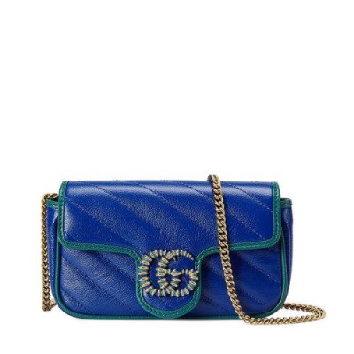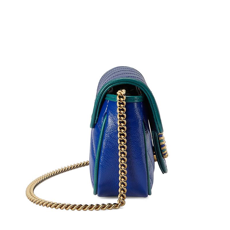 【包税】GUCCI/古驰 2021春夏新款 GG Marmont系列 女士超迷你蓝色和绿松石皮革翻盖珐琅双G单肩斜挎手提包5749691X5EG8382