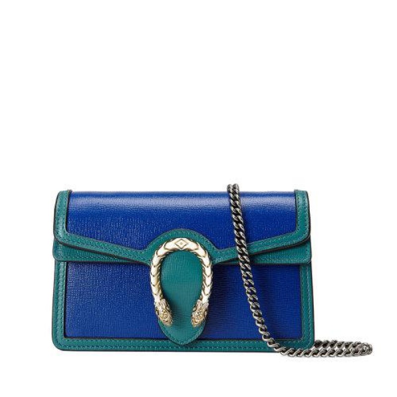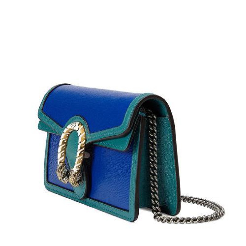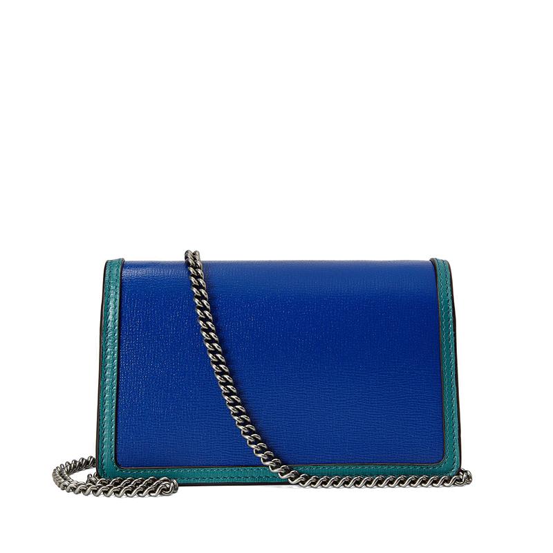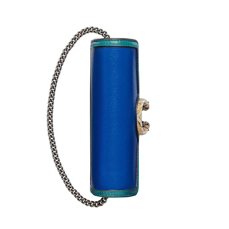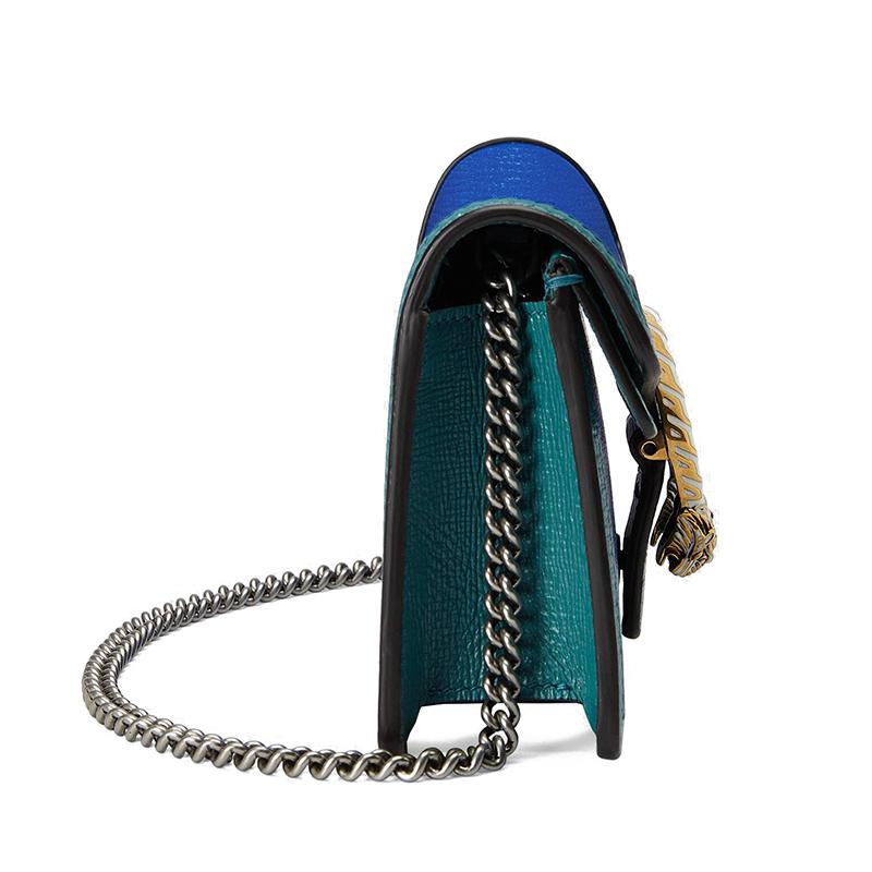 【包税】GUCCI/古驰 2021春夏新款 Dionysus系列 女士超迷你蓝色和绿松石色皮革虎头扣单肩斜挎包47643218YQX9278