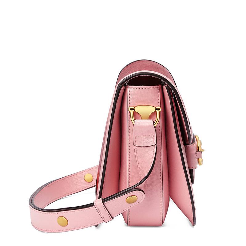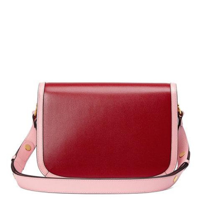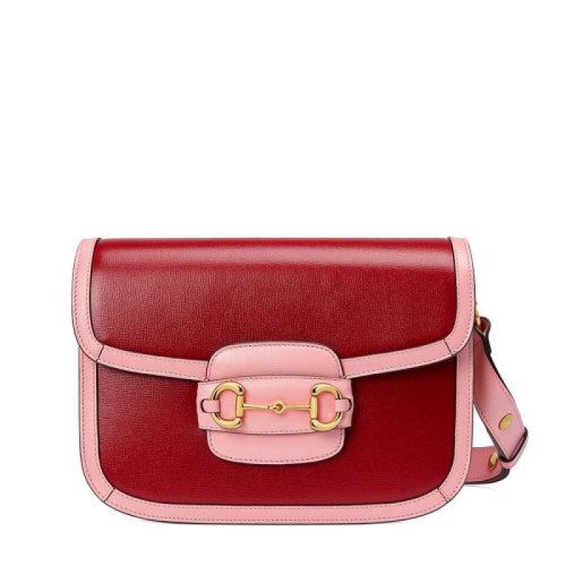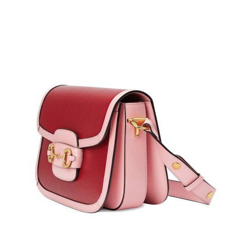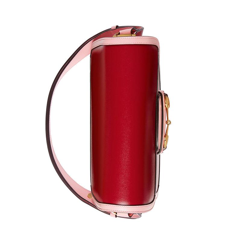 【包税】GUCCI/古驰 2021春夏新款 Horsebit 1955系列 女士小号红色和粉色皮革马衔扣单肩斜挎手提包6022041DBAG6668
