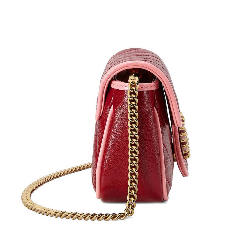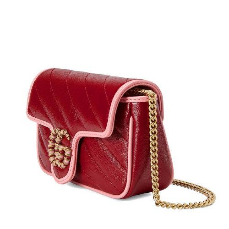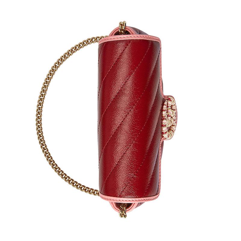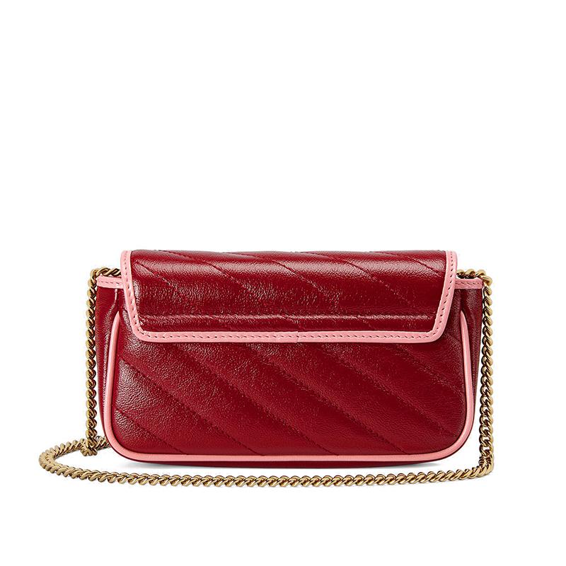 【包税】GUCCI/古驰 2021春夏新款 GG Marmont系列 女士超迷你红色和粉色皮革翻盖珐琅双G单肩斜挎手提包5749691X5EG6476