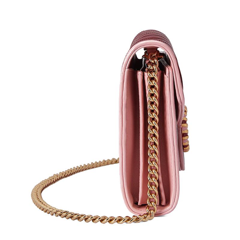 【包税】GUCCI/古驰 2021春夏新款 GG Marmont系列 女士红色和粉色皮革双G链式钱包5738071X5EG6476