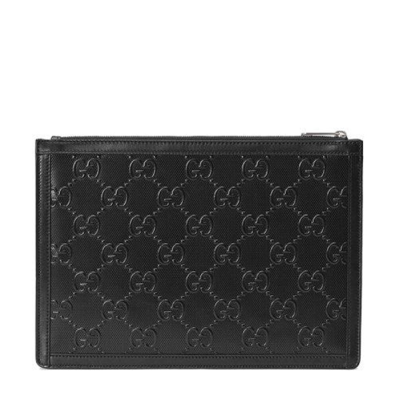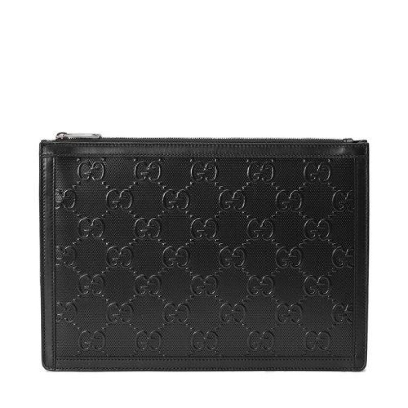 【包税】GUCCI/古驰 21新款GG embossé系列 男士黑色双G压纹皮革拉链手拿包6464491W3AN1000