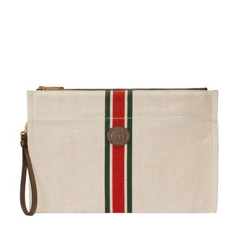 【包税】GUCCI/古驰 21春夏新款 男士米色亚麻红绿条纹GG皮革标志拉链手拿包6575922U2AG8686 $1229.4 |