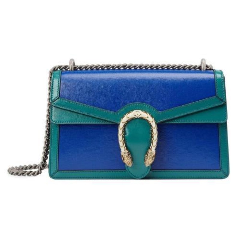 古驰宠儿精*w*选的经典款式经鲜艳明快的配色焕新演绎,令人联想起美仑美奂的珍贵宝石。这款Dionysus系列手袋采用宝石蓝色皮革制作而成,饰以金色调的标志性虎头锁扣。纹理配件和闪亮珐琅细节突显品牌优雅不俗的设计格调。