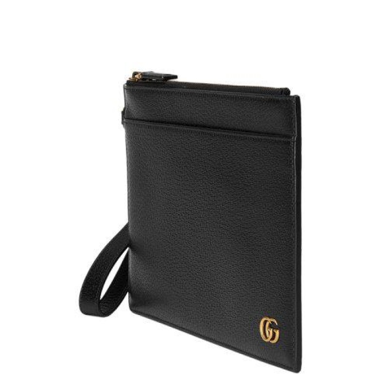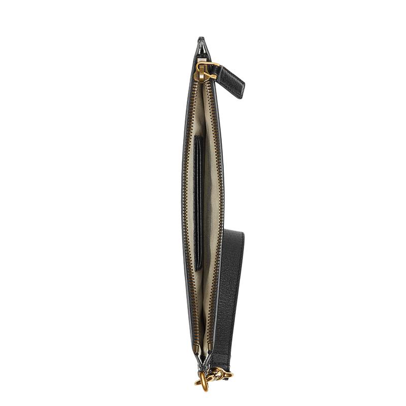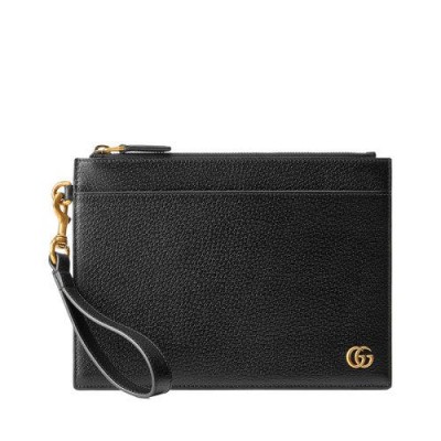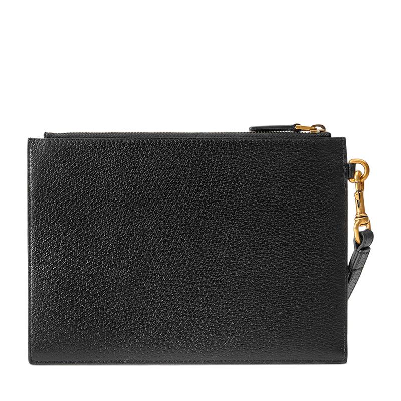 【包税】GUCCI/古驰 21春夏新款GG Marmont系列 男士黑色皮革金色双G装饰拉链手拿包658562DJ20T1000