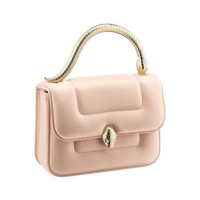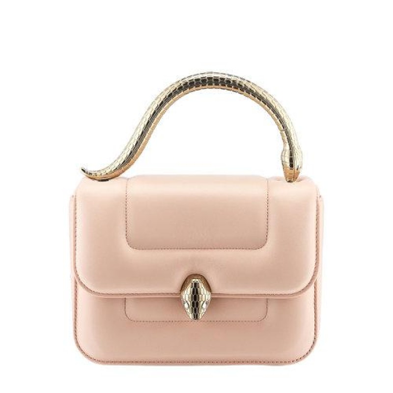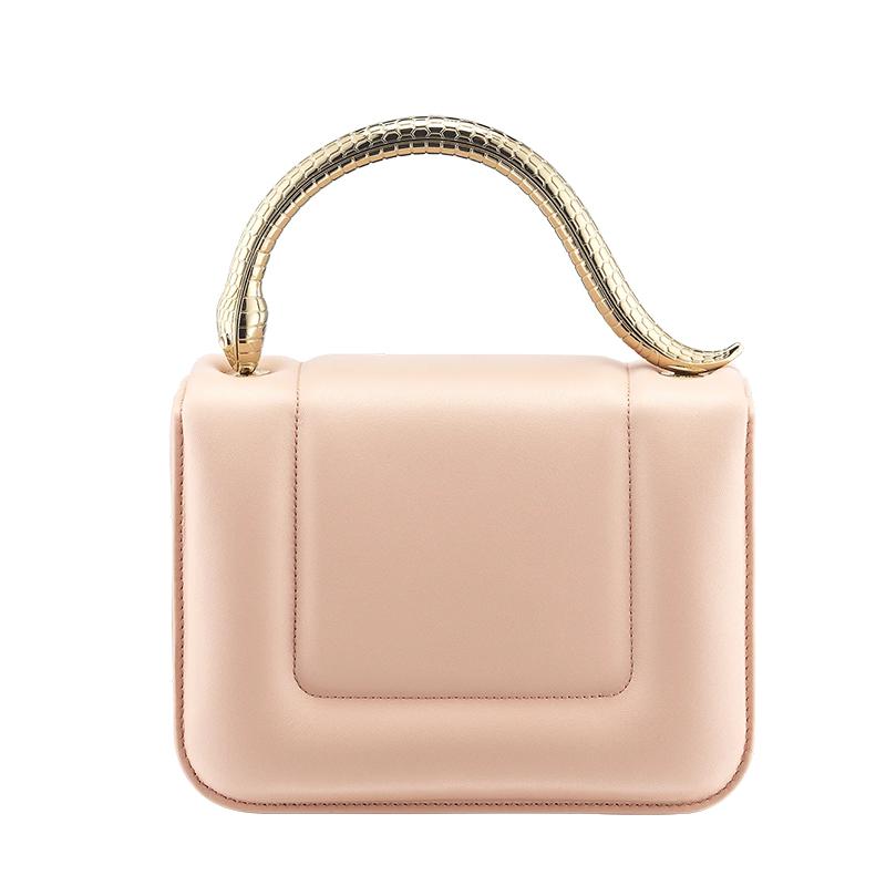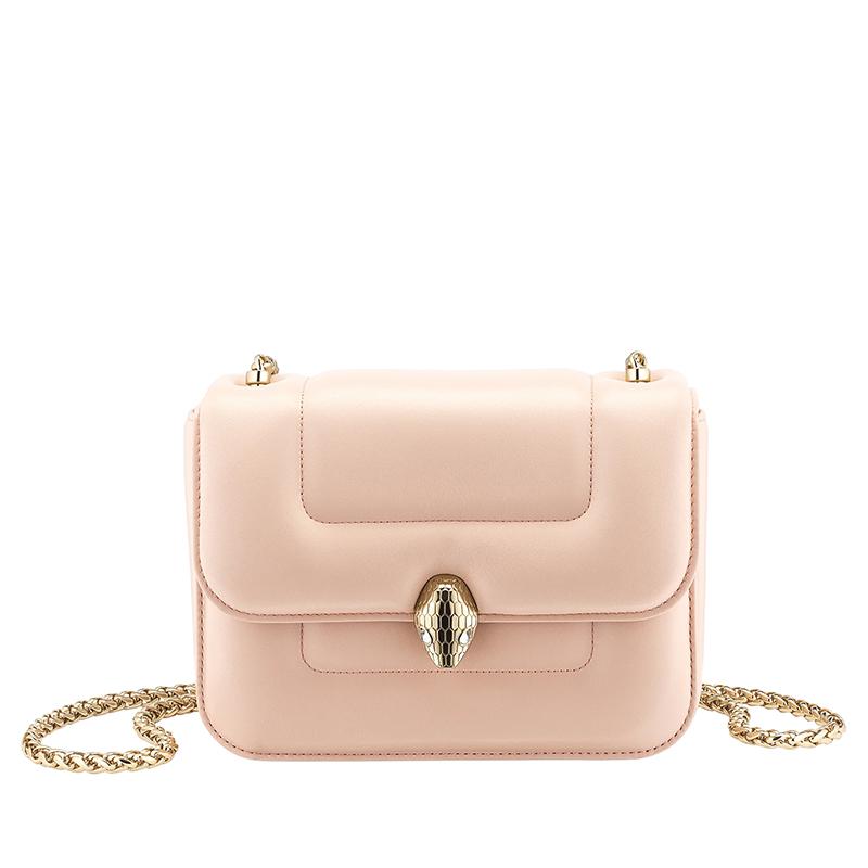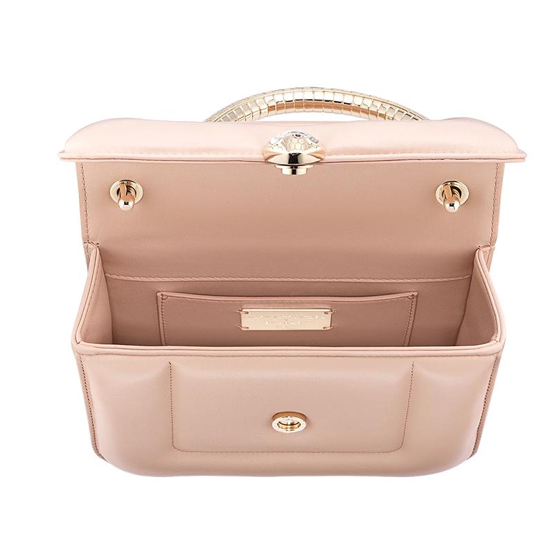 【包税】预售一个月 BVLGARI/宝格丽 MARY KATRANTZOU联名灵蛇蜕变 女士粉色柔软纳帕皮Serpenti金色黄铜表扣水晶蛇头单肩斜挎手提包单肩包291072