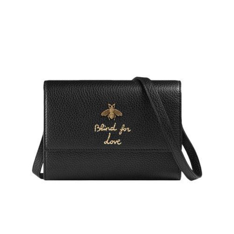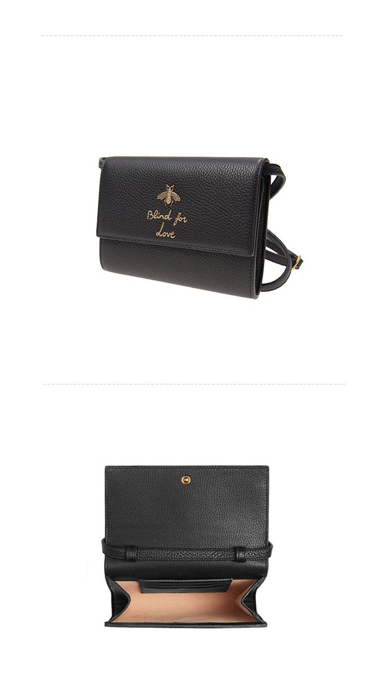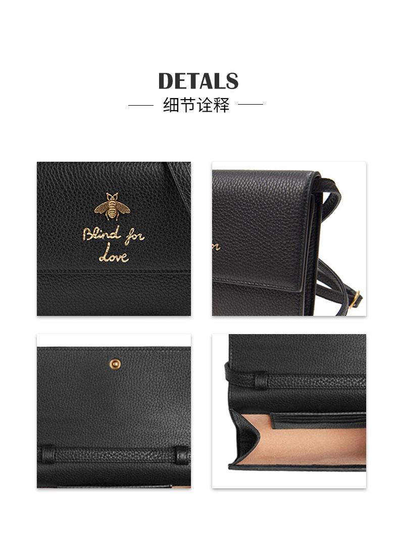 GUCCI/古驰 古琦黑色牛皮mini蜜蜂女士单肩包黑色系498097 A7M0T 1000 黑色【现货】