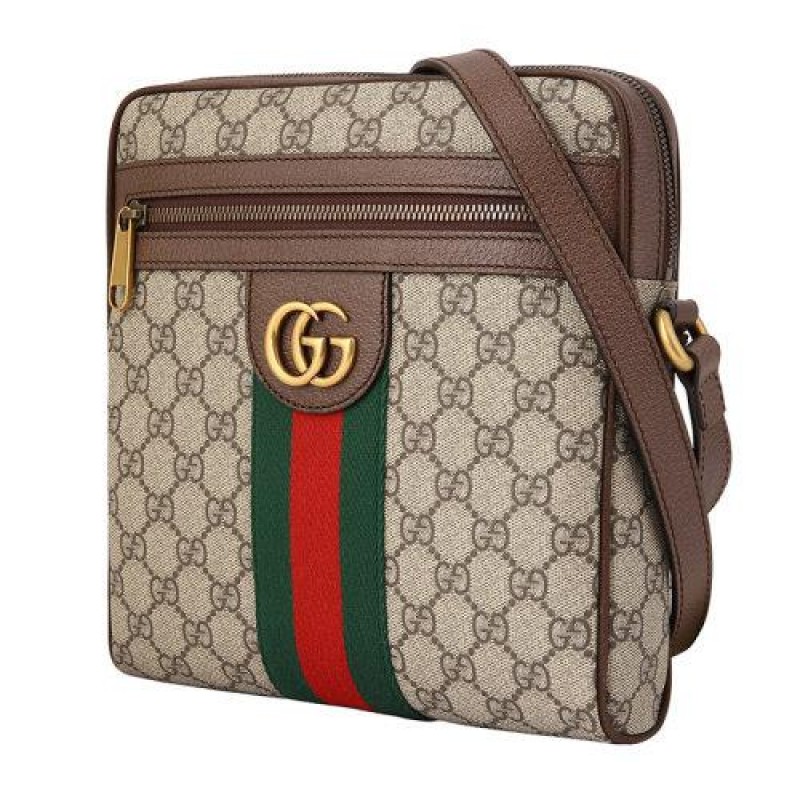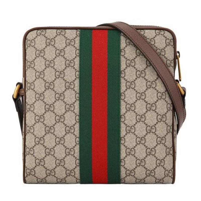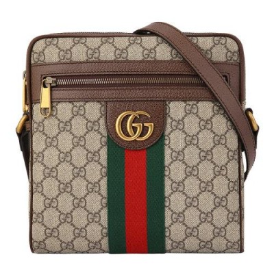 现货秒发 GUCCI/古驰 Ophidia系列 咖啡色小号双G帆布牛皮革,聚氯乙烯材质 邮差包男士单肩包 54792696IWT