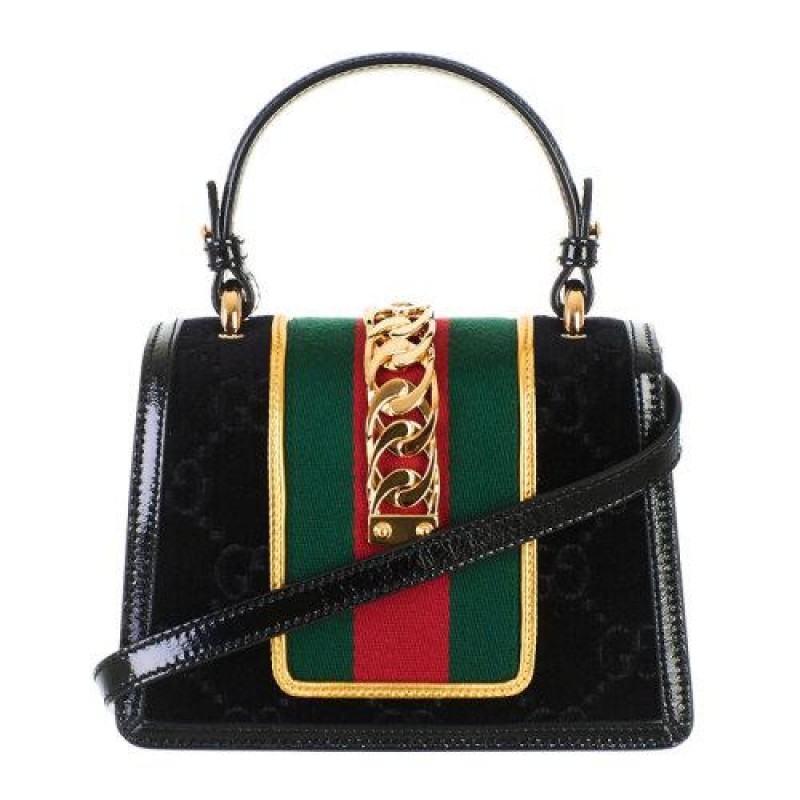 【包税】GUCCI/古驰 女士黑色皮革配天鹅绒金属字母徽标压花单肩包斜挎包手提包女包 470270-9JTFG-8711 $3642.1 |