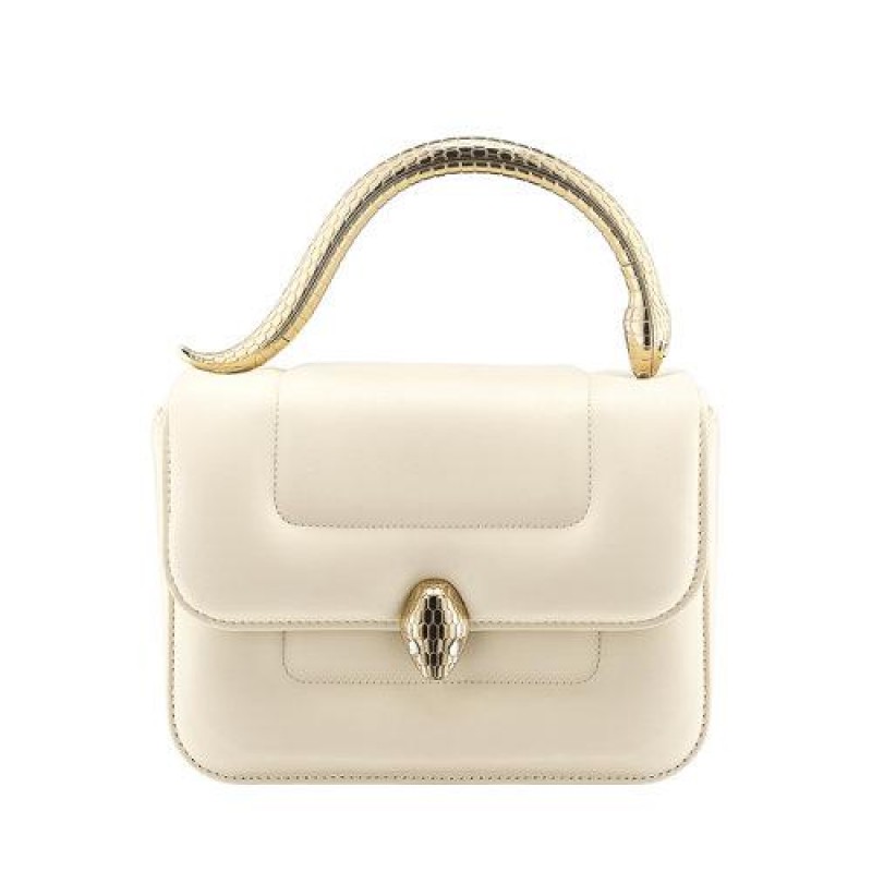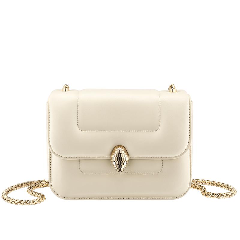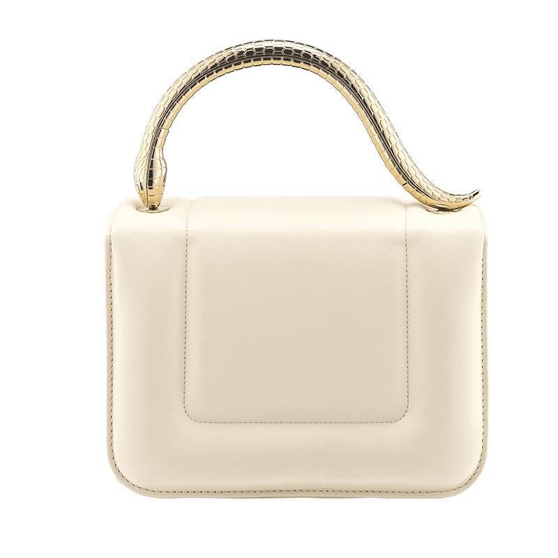 【包税】预售一个月 BVLGARI/宝格丽 MARY KATRANTZOU联名灵蛇蜕变 女士白色柔软纳帕皮Serpenti金色黄铜表扣水晶蛇头单肩斜挎手提包291074
