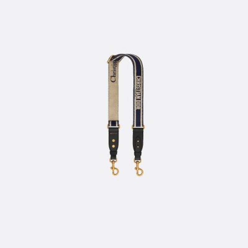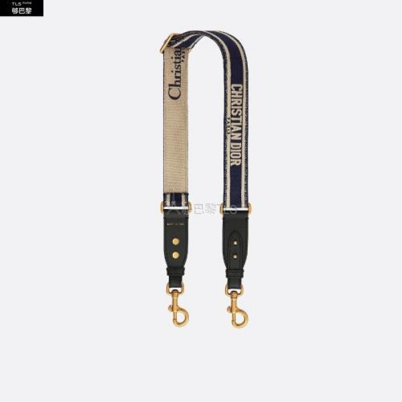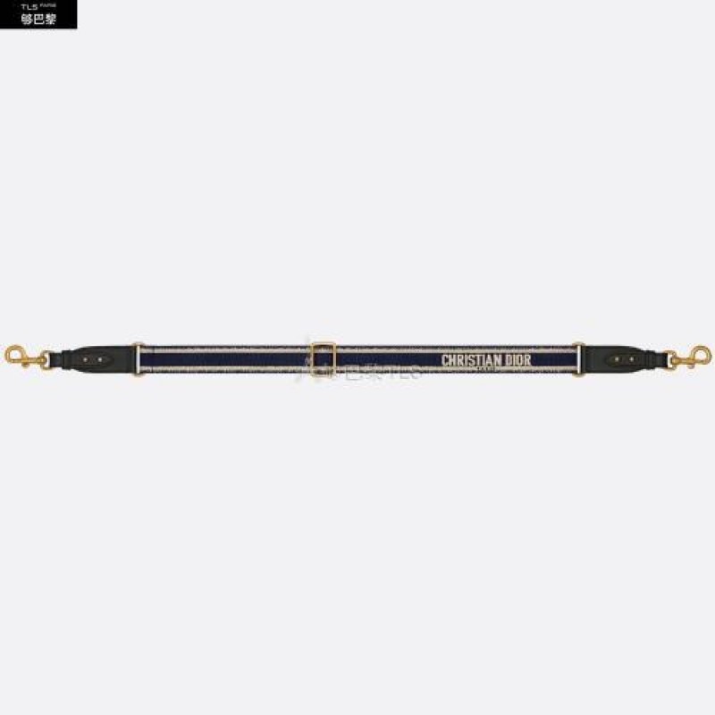 La bandouliere brodee est un accessoire unique qui permet de personnali*w*ser certains des sacs de la Maison. La signature "Christian Dior" apparait au centre de ce modele fin et reglable, tandis que les extremites sont renforcees de cuir de veau noir. Deux crochets a mousqueton en metal a finition or vieilli permettent de l'attacher*w*a votre sac prefere. Cette bandouliere bleue reglable se portera a l'epaule ou crossbody pour un style tres personnel.