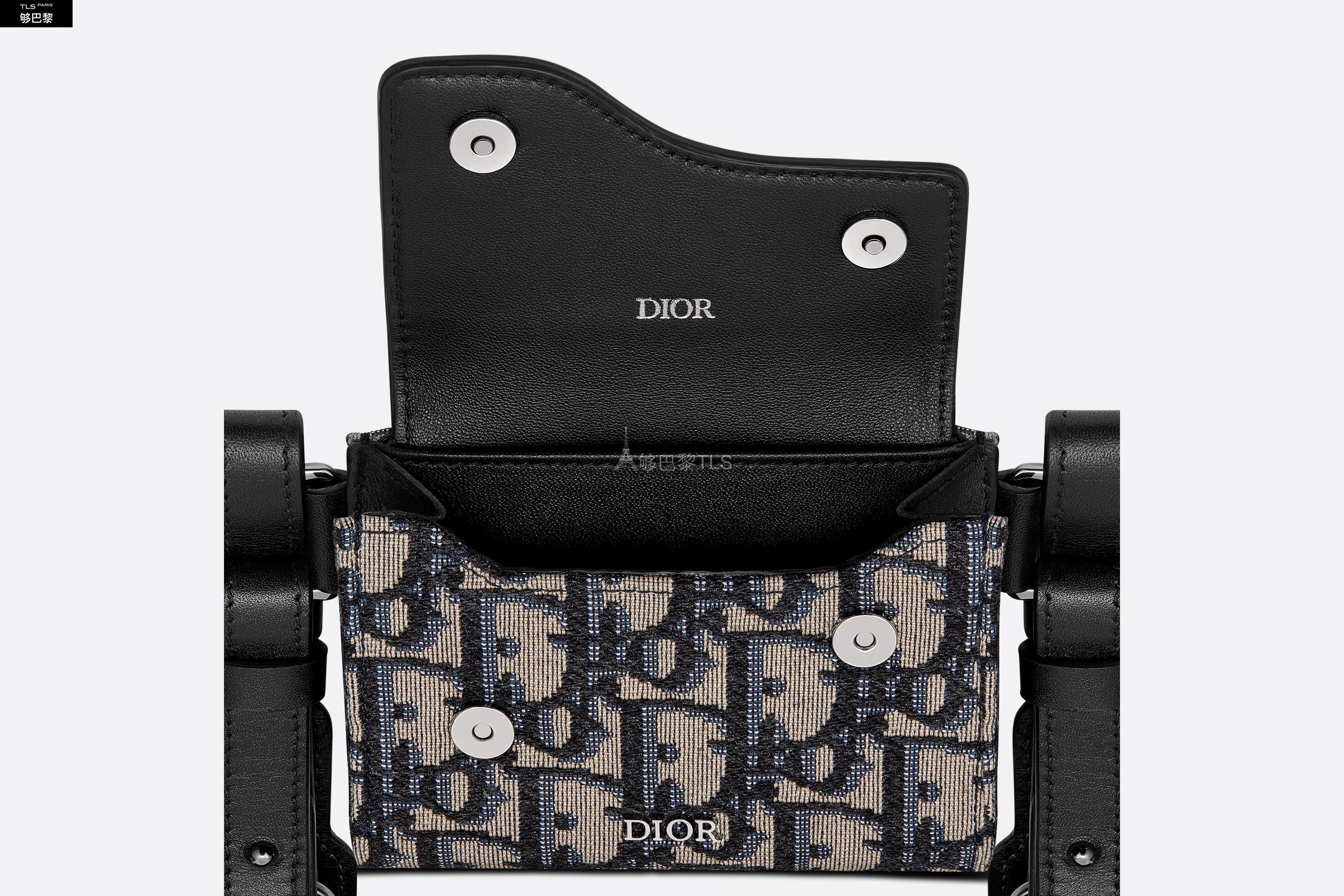 Cette pochette a bandouliere Dior Elite revisite les lignes emblematiques du Saddle a travers une version fonctionnelle. Habillee du motif Dior Oblique en toile jacquard beige et noire, ce modele se compose de deux pochettes soulignees d’une signature "DIOR" en laiton finition ruthenium. La bandouliere en cuir de veau lisse noir amovible et reglable vous permettra de porter cette pochette polyvalente crossbody, a l’epaule, autour du cou ou separement a la main.