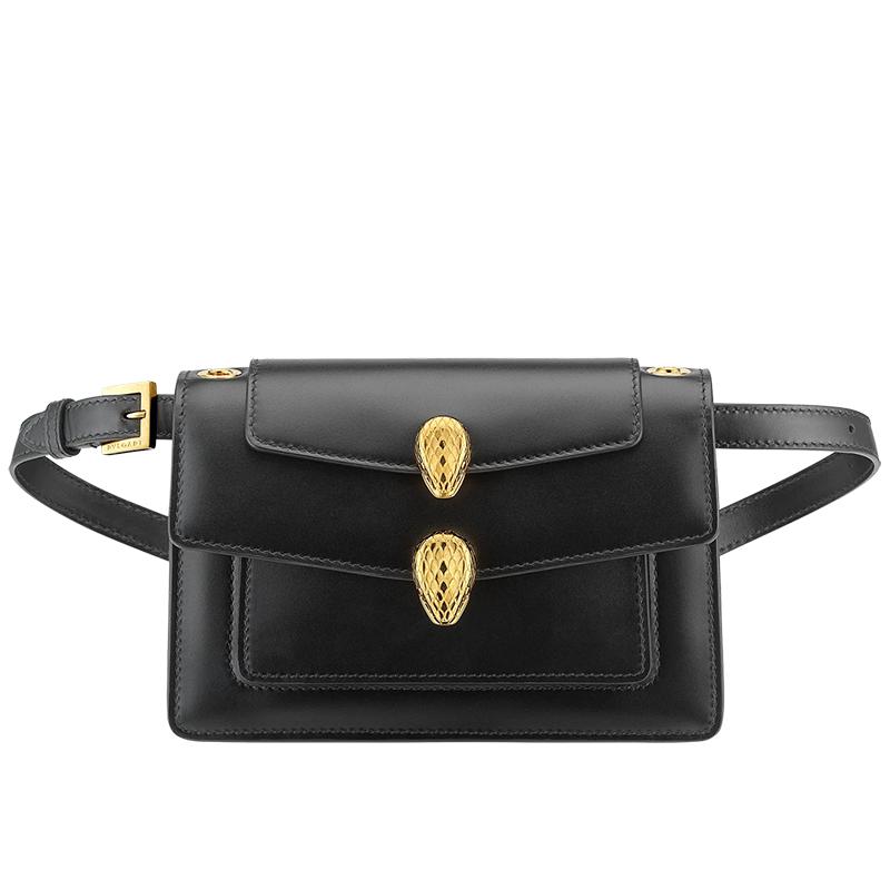 【 Tax included 】 Pre sale 2-3 weeks BVLGARI/BVLGARI ALEXANDER WANG X BVLGARI limited edition black calf leather double snakehead buckle single shoulder hand-held diagonal waist bag 288737