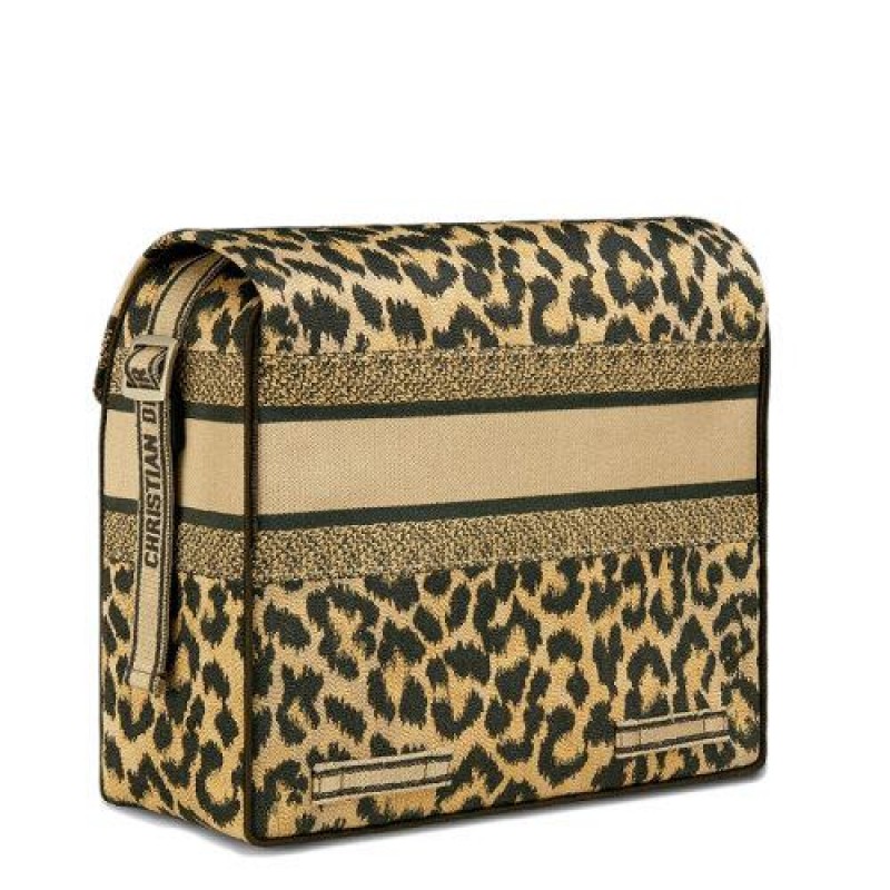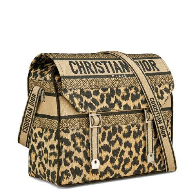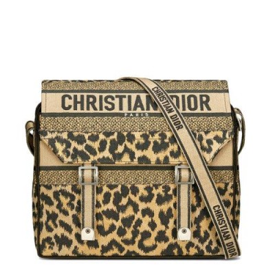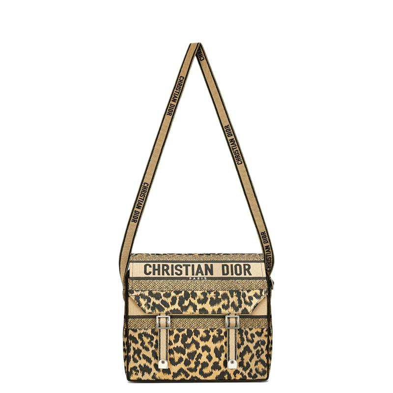 【包税】DIOR/迪奥 21秋冬新款DIORCAMP系列 男女同款米色拼色Mizza图案豹纹刺绣单肩斜挎邮差包M1291VRHM_M918