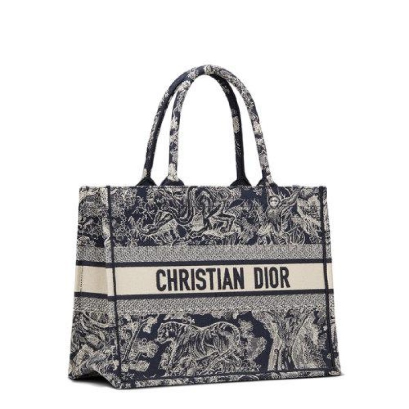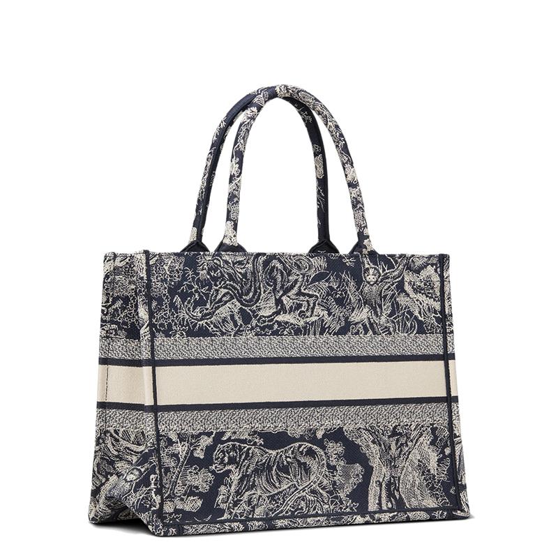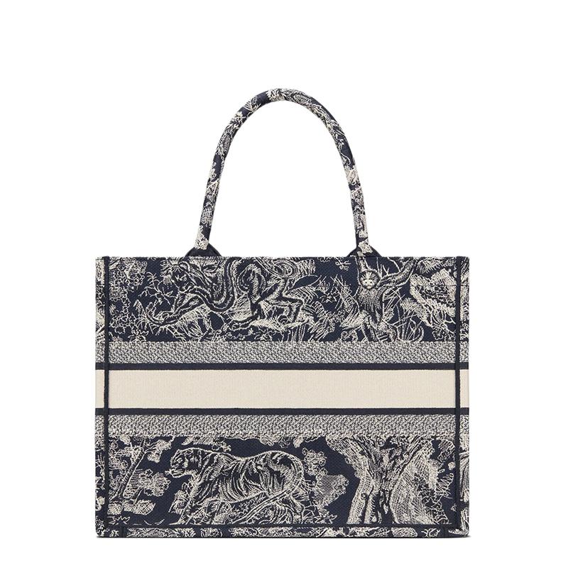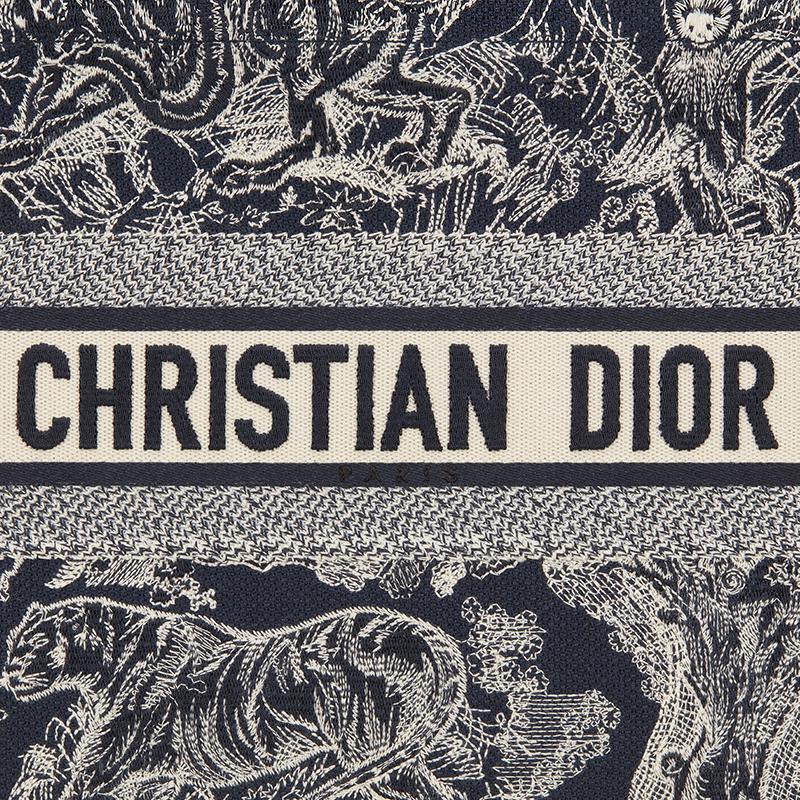 Dior Book Tote是Christian Dior艺术总监Maria Grazia Chiuri签名的原创作品,如今已成为经典之作。设计可容纳您的日常必需品,并完全绣有蓝色Toile de Jouy反向图案,通过倒立的配色方案降低了房屋的标志性图案。正面饰有CHRISTIAN DIOR签名,增强了这款小巧的型号。这款手提袋是Dior专有技术的典范,可以手提或放在肩上。