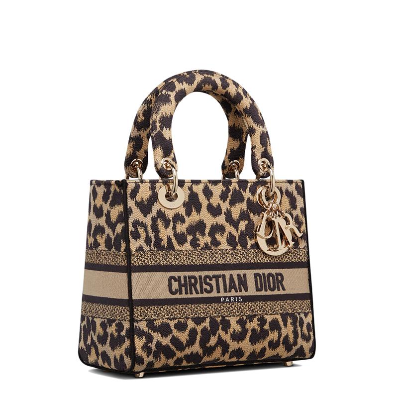【包税】DIOR/迪奥 21秋冬新款LADY D-LITE系列 女士中号米色拼色Mizza图案豹纹刺绣单肩斜挎手提戴妃包M0565ORHM_M918