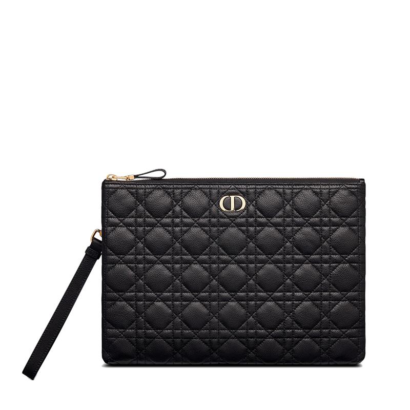 【包税】DIOR/迪奥 21秋冬新款CARO系列 女士大号黑色柔软棱纹小牛皮金色CD标志日常手拿包S5086UWHC_M900 $1775.7 |
