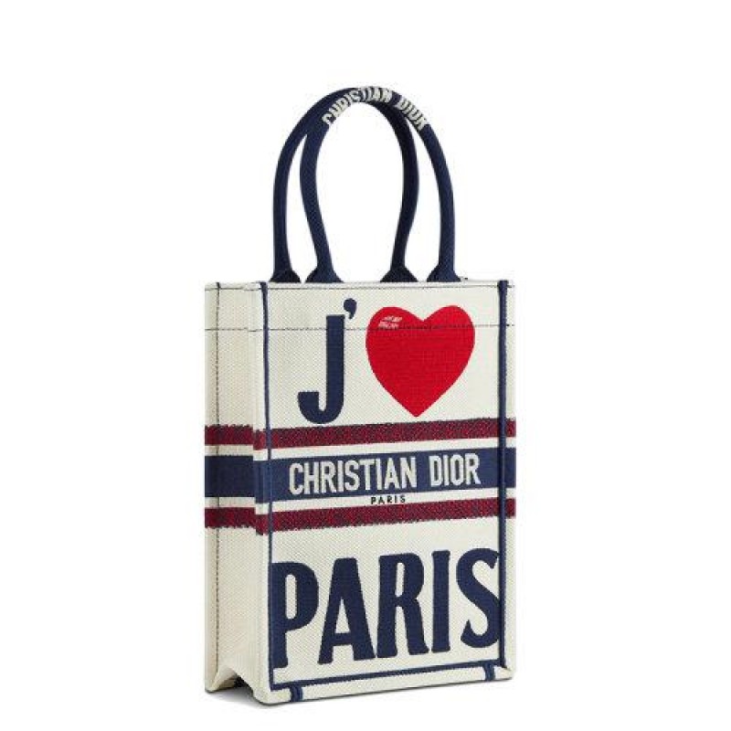 【 Tax included 】 DIOR/Dior 2021 Autumn/Winter New BOOK Series Male and Female Same Color I Love Paris Pattern Embroidered White Handheld Vertical Tote Bag M1272ZRGW_S933