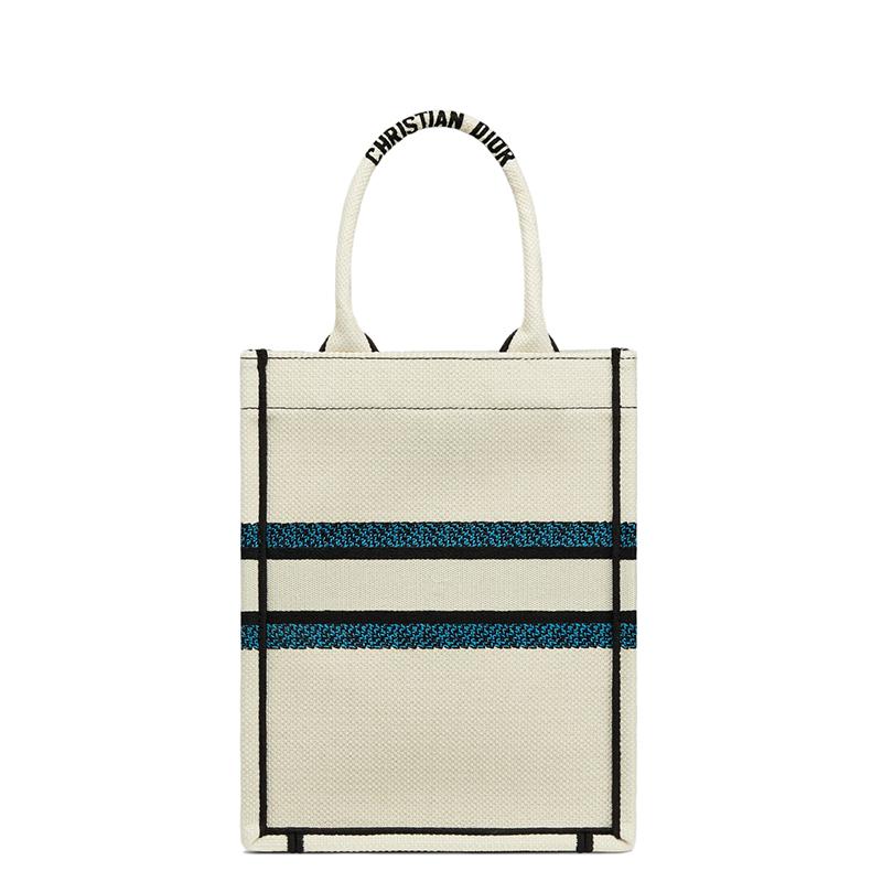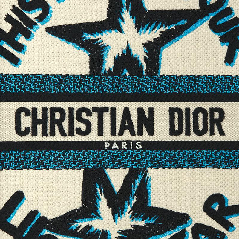 Dior Book Tote是Christian Dior艺术总监Maria Grazia Chiuri签名的原创作品,如今已成为经典之作。这款垂直的白色款式完全绣有彩色的幸运星图案,而CHRISTIAN DIOR签名则增强了正面。这款垂直Dior Book手提袋可以手工携带,这是Maison专有技术的典范。
