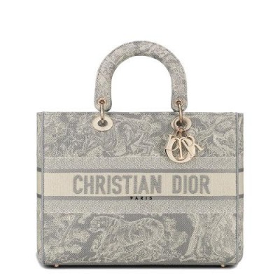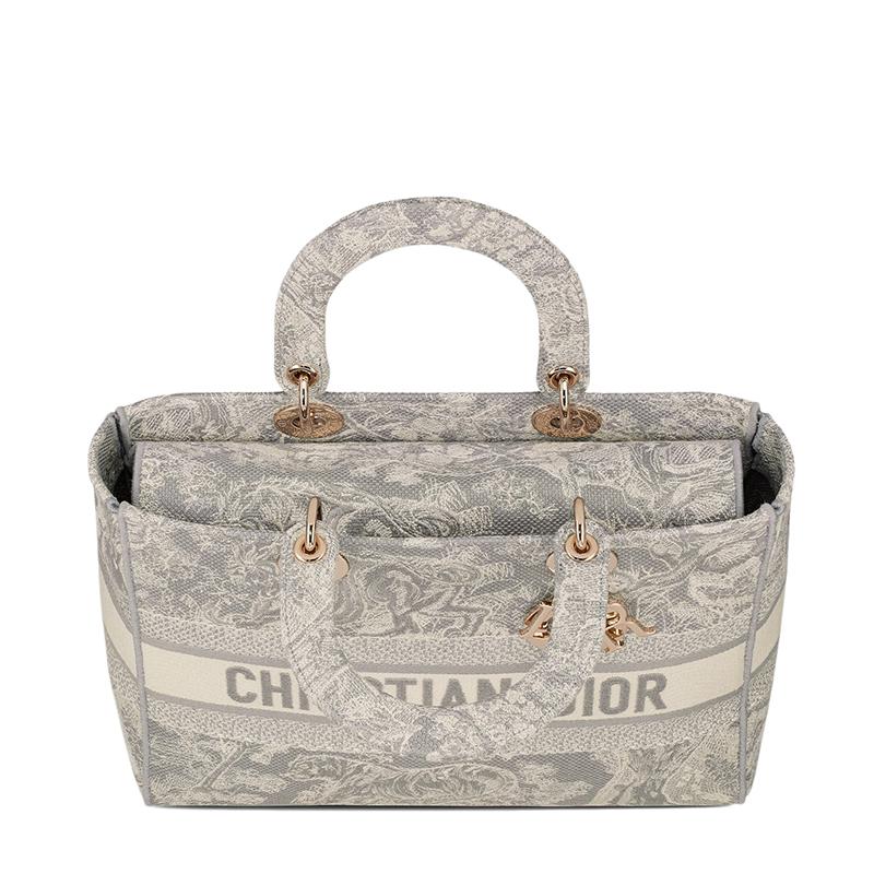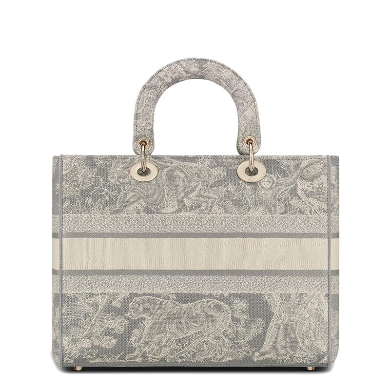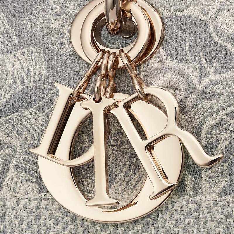Lady D-Lite手提袋体现了经典优雅与Dior品牌现代感的结合。此作品完全绣有灰色的Toile de Jouy反向图案,通过倒置配色方案降低了房屋的象征性图案。正面饰有CHRISTIAN DIOR签名,而厚实的DIOR浅金色金属饰物则增添并照亮其轮廓。这款大号Lady D-Lite手提袋带有大尺寸刺绣,可翻转和可拆卸的肩带,可以用手拿在肩上或斜挎包上。