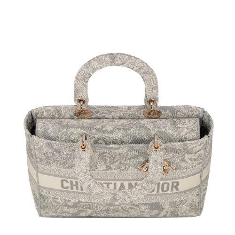 【包税】DIOR/迪奥 21秋冬新款LADY D-LITE系列 女士大号灰色Toile de Jouy反向刺绣单肩斜挎手提戴妃包M0566ORGO_M932