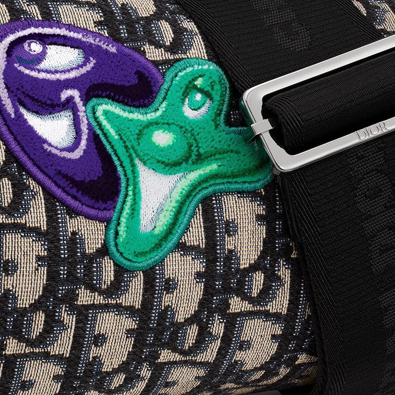 【包税】DIOR/迪奥 21秋冬新款ROLLER系列 男士米色黑色老花帆布KENNY SCHARF联名图案印花斜挎单肩滚筒包1ESPO061UAU_H10E