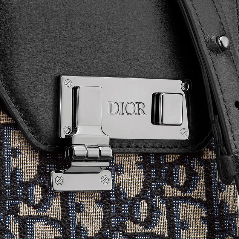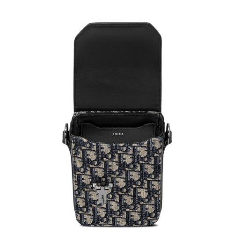 【包税】DIOR/迪奥 21秋冬新款 男士米色黑色老花帆布黑色光滑小牛皮翻盖银扣竖款手机包单肩斜挎包2LXCA345UCT_H28E