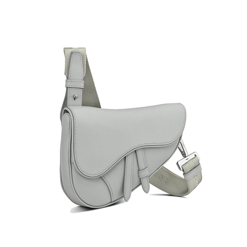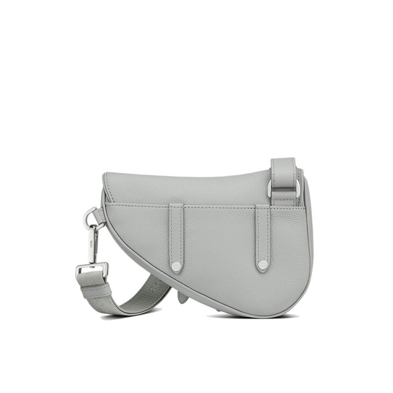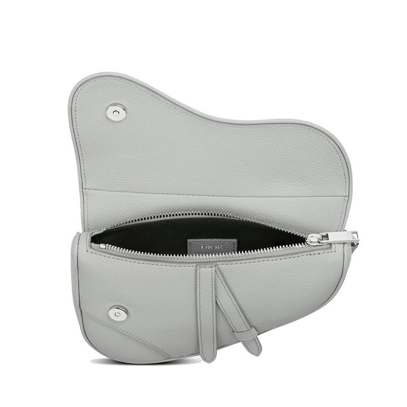 【包税】DIOR/迪奥 21春夏新款SADDLE系列 男士迷你灰色粒面小牛皮磁性翻盖拉链可调式尼龙提花肩带马鞍腰包斜挎包1ADPO191YMJ_H810