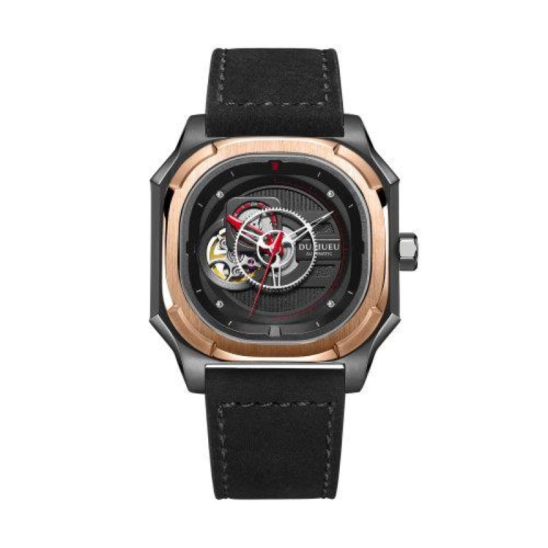DURIUEU/杜里手表 进口机芯自动机械表商务时尚潮流男士腕表 44mm黑盘 DU-18006M03ER1 全球联保