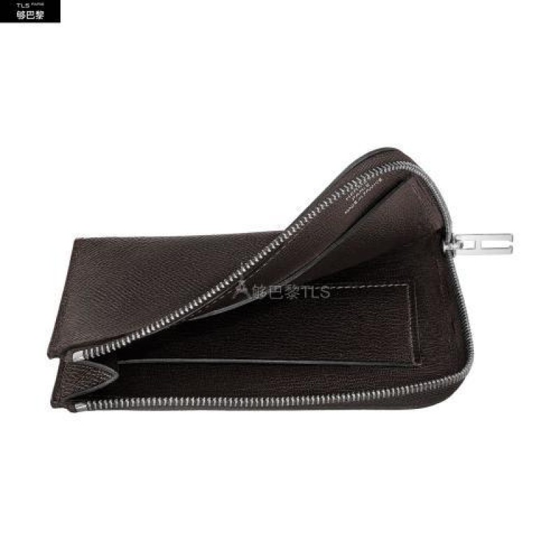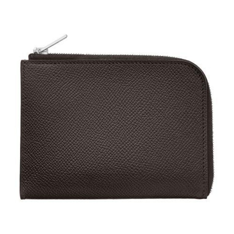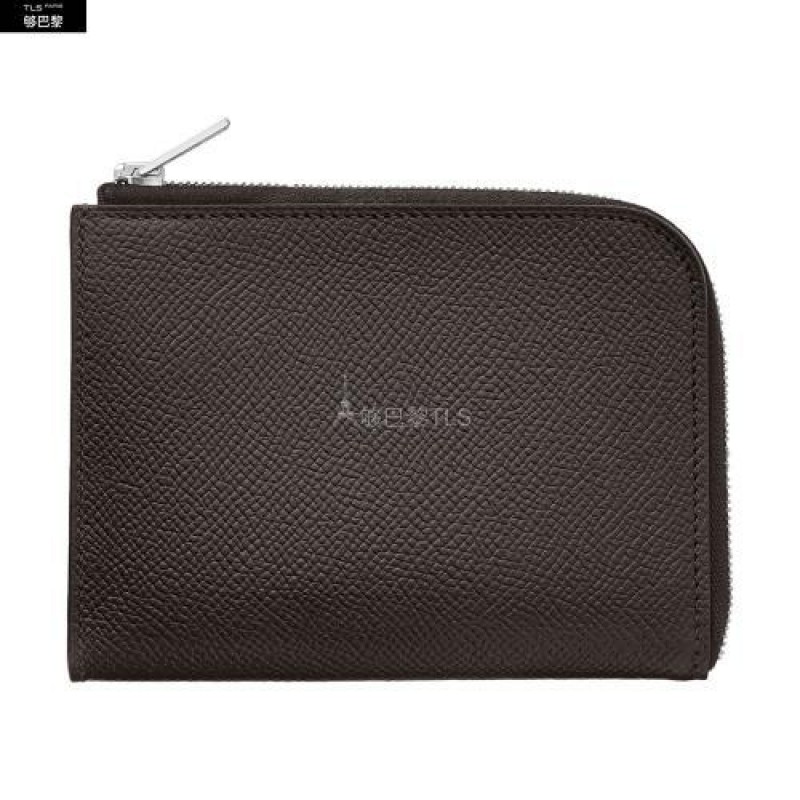 Portefeuille en veau Epsom, fermeture a glissiere argentee palladieeFabrique en France