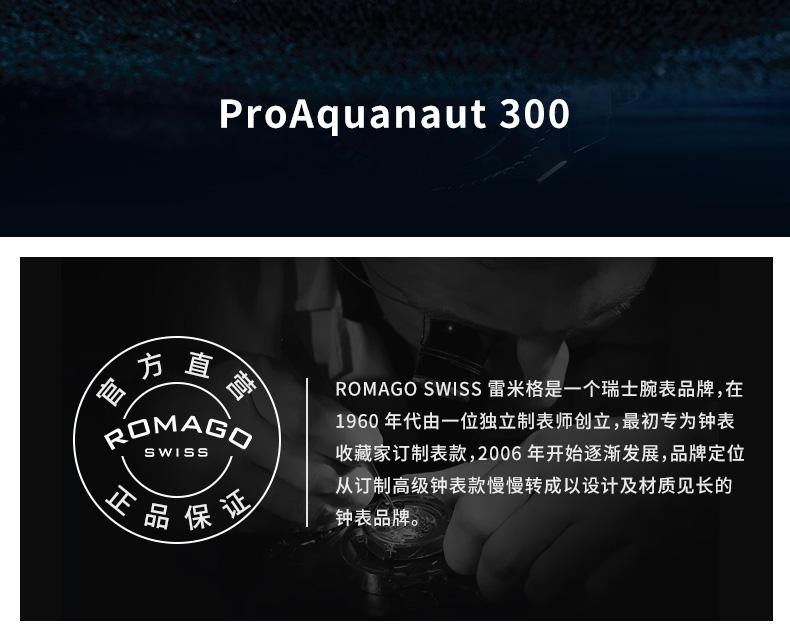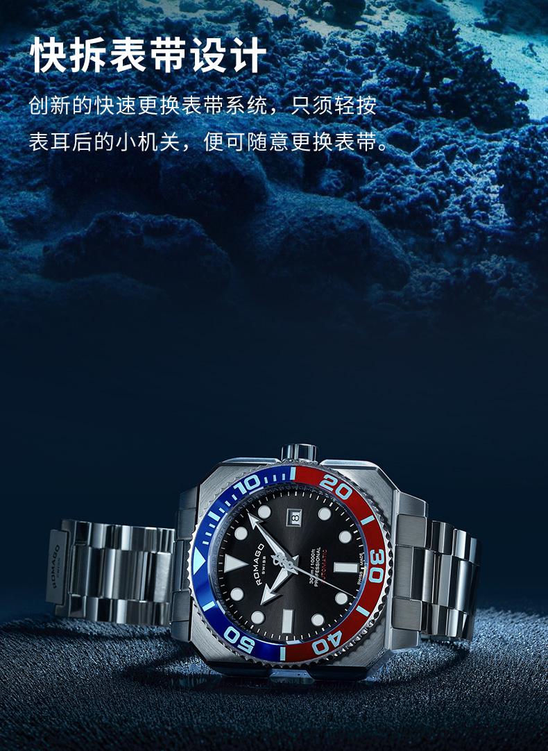 ROMAGO/雷米格 瑞士手表 深潜者300男士全自动机械经典日历款夜光防水方形钢带潜水表 $1828.6 |