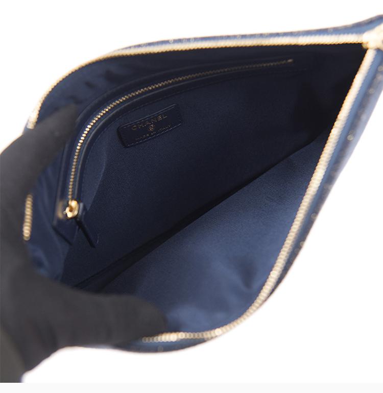 Chanel/香奈儿 20春夏 女士经典logo字母蓝色帆布手拿包