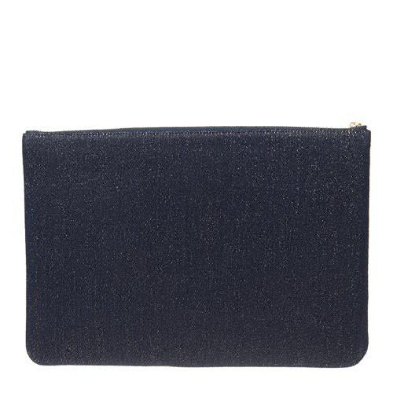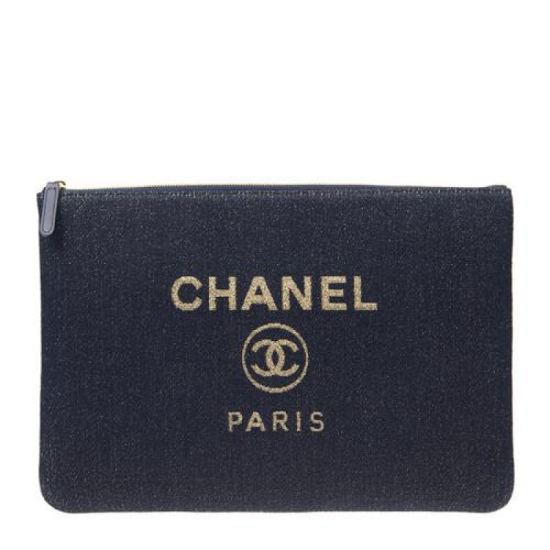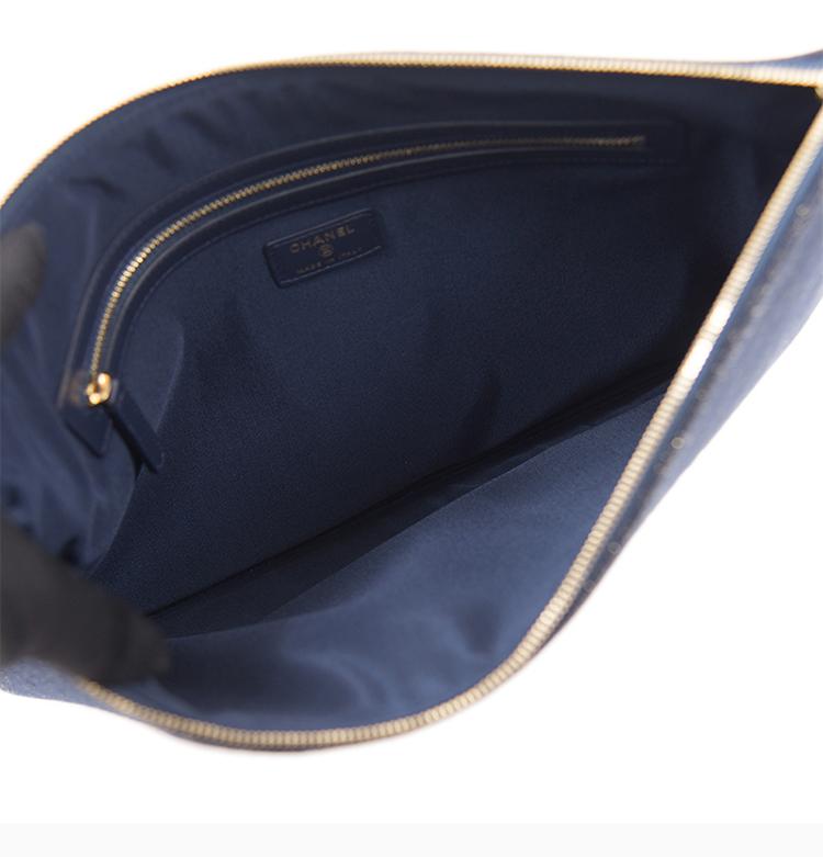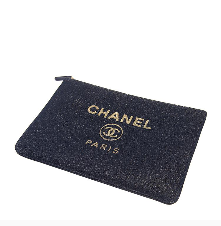 【包税】Chanel/香奈儿 女士蓝色经典logo标识帆布手拿包
