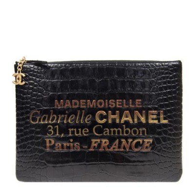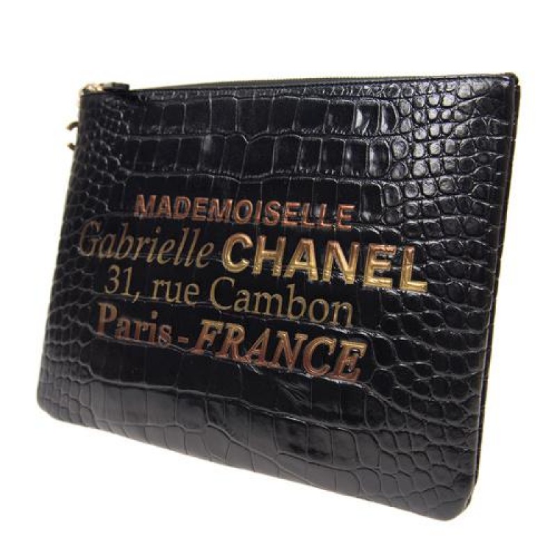 [Tax included] Chanel/Chanel neutral black imitation crocodile leather gold buckle clutch $1598.4 |