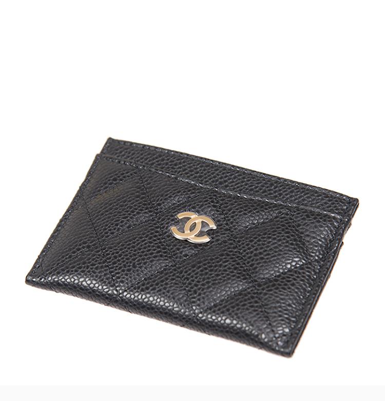 【包税】Chanel/香奈儿 女士经典菱纹黑色牛皮logo标夹层卡包卡片夹 $782.7 |